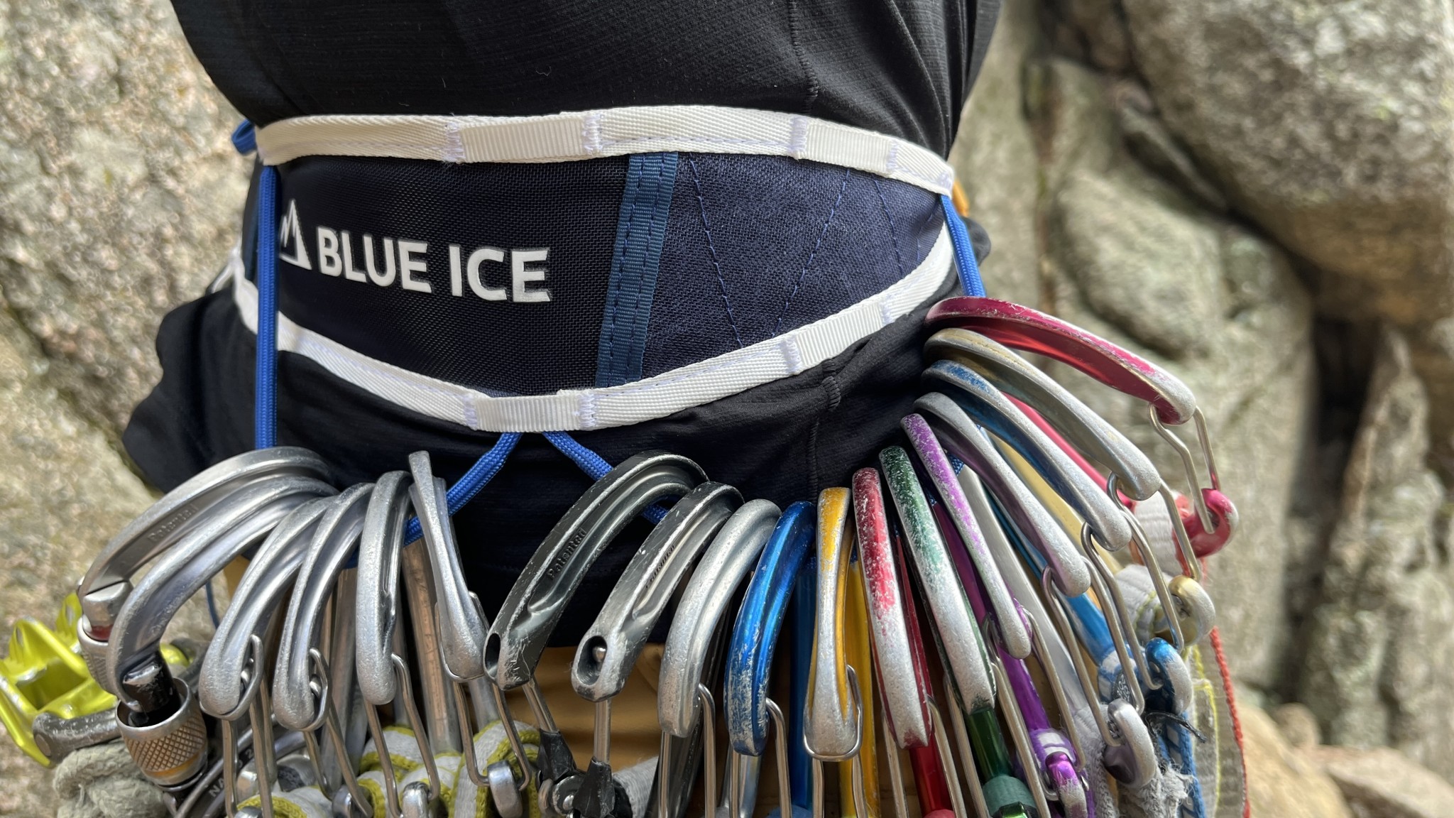There are four gear loops, two on each side, just like other fully-featured climbing harnesses. These gear loops are large enough to fit twelve full-sized carabiners each, which rivals the best gear loops on heavier rock-oriented harnesses. The gear loops are placed conveniently close to the front of the harness, meaning you won't have to search around the back of your body to find protection when you need it. There is also a small haul loop in the back.