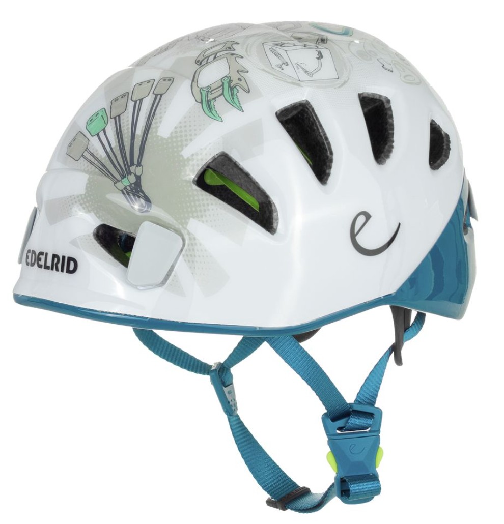 The Shield II has an expanded polystyrene (EPS) liner with a polycarbonate shell on top. It's available in two sizes, Size 1 (48-56 cm) and Size 2 (52-62 cm). This helmet weighs 9.7 ounces in the Size 2 that we tested, and Edelrid has added some fun graphics to several of the color choices.