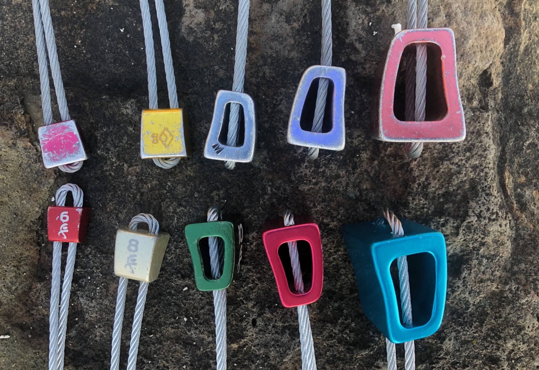 The Huevos are just okay in highly featured, more textured, or large-grained rock types. Their smooth sides just don't work as well in these types of rock compared to models like the DMM Wallnuts or DMM Alloy Offsets, which feature a small depression on their dominate use side that accommodates large crystals or irregularities.