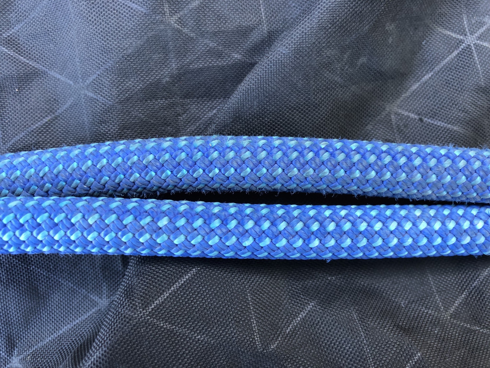 This rope weighs in at 59 g/m, which isn't bad compared to fatter 9.8 or thicker ropes, but is by no means as light as the 52 g/m cords that are 8.9 or 9mm thick.