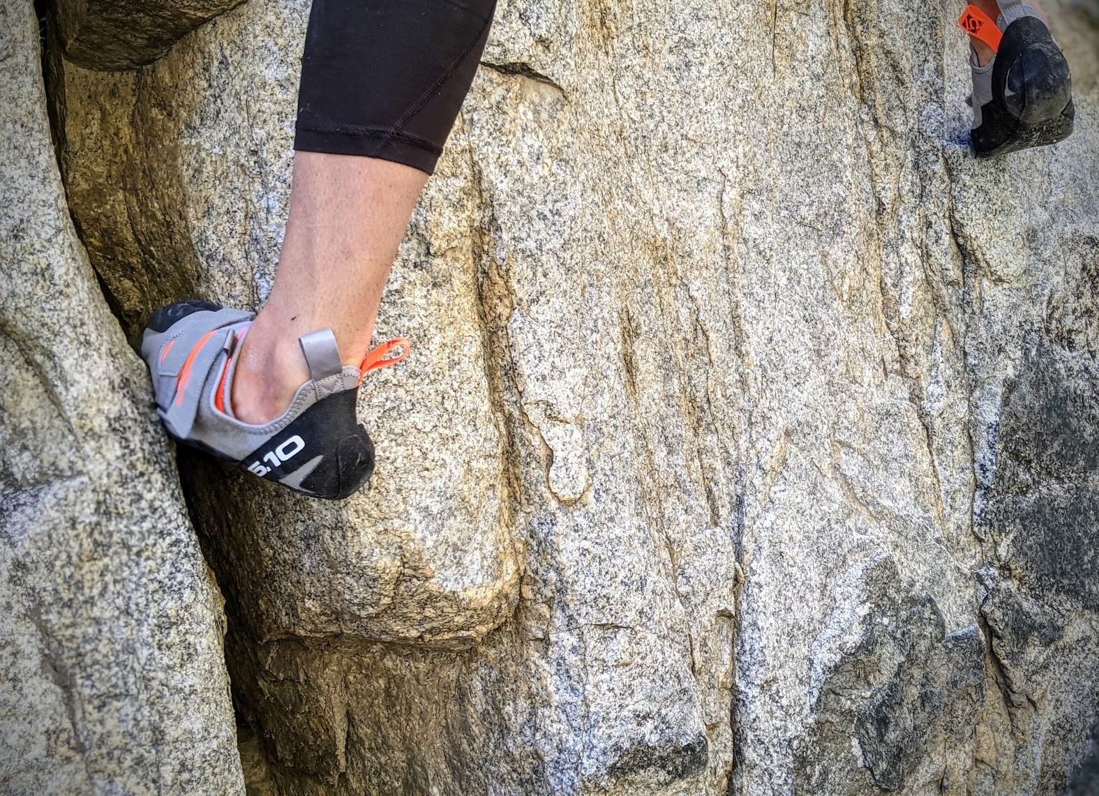 The soft synthetic upper and extra padding on the Kirigami really come in handy here. This shoe is surprisingly great for crack climbing. The padded tongue and simple Velcro closure make it comfortable in hand cracks and wider.