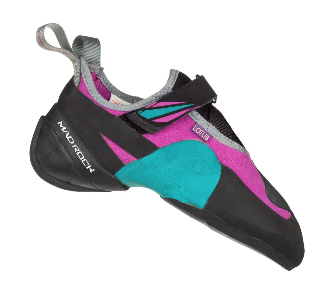 With the fit of a slipper, sticky rubber, and an aggressive shape, the Mad Rock Lotus is a steep climbing powerhouse. These shoes are great for the gym or bouldering since they are easy to get on and off. If they are sized properly (definitely go up a size or two from your street shoe size!) they also make for a comfortable shoe for all-day sport climbing. We are impressed with these kicks, as they're hard to beat when it comes to price and overall performance.