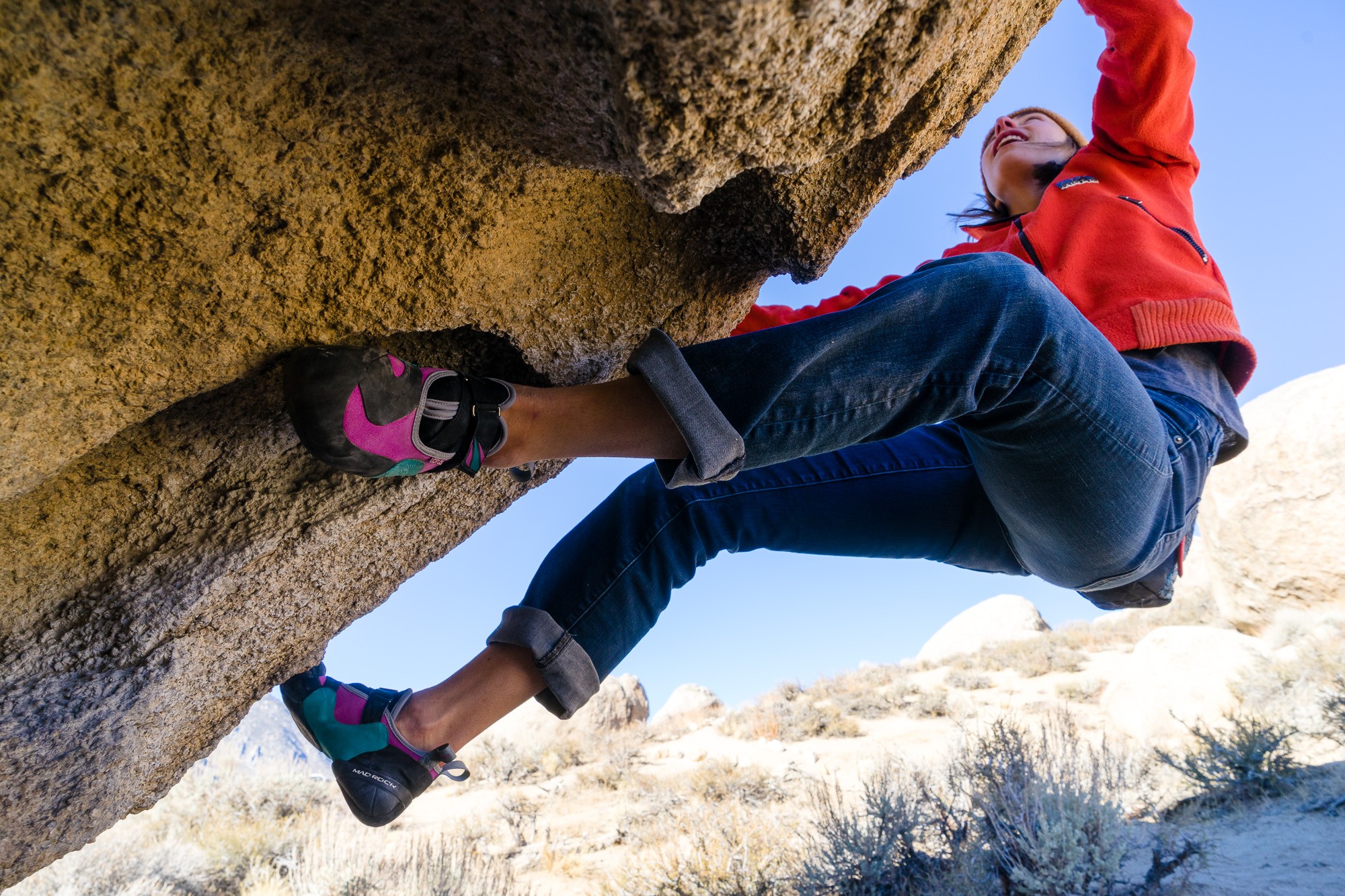 The toe box is stiff enough to feel solid on small edges, and the rubber is sticky. Though they are made for steeper climbing, with their aggressive downturn and elaborate heel, the Lotus can still be worn on vertical terrain where tiny edges are the only option. The Lotus is comparable in design to some of the other high-performance, aggressively shaped shoes in this review, but comes at a third of the price. We were skeptical of Mad Rock's Science Friction rubber at first, but over time it won us over by standing up to the tried and tested rubber of both the La Sportiva and Five Ten models we tested.