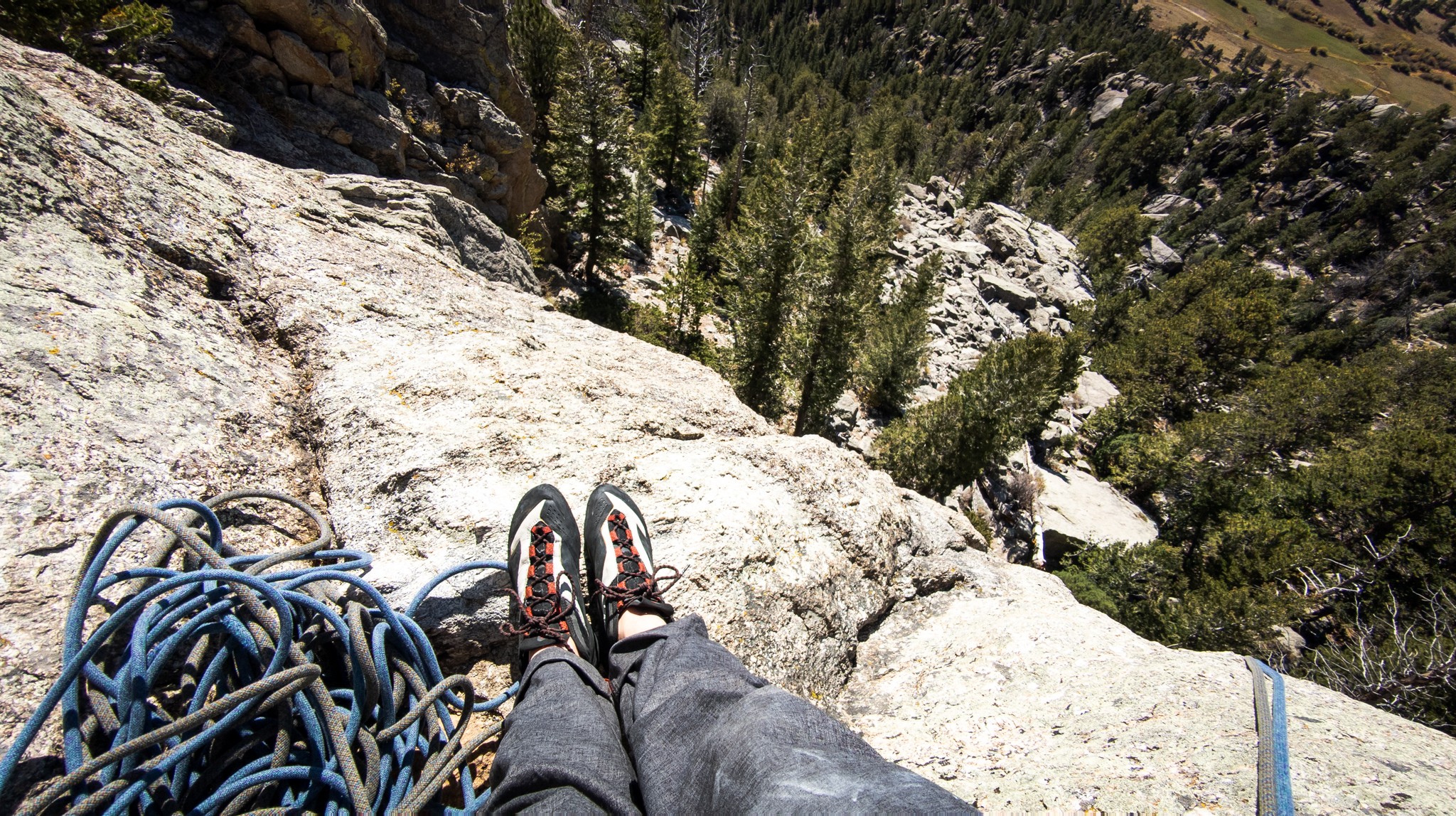The thick laces hold tension exceptionally well, which is great for fit, but at times, they did create some hot sports where that tension wasn't spread evenly. The last of the shoes is slightly narrow and wasn't as comfortable standing on belay ledges as wider shoes – but this largely comes down to how well this particular shoe fits our foot. Testers with wider feet also noted that the narrow last combined with softer rubber made the shoe less comfortable to jam in wider cracks. For some, the molded heel cup helped this shoe fit like a glove. But for a few testers, it caused enough “shoe farting” that they actually didn't want to climb in this shoe. All of this is to say that if the Aspect Pro fits your foot well, you'll find a very comfortable shoe for all day trad climbs.