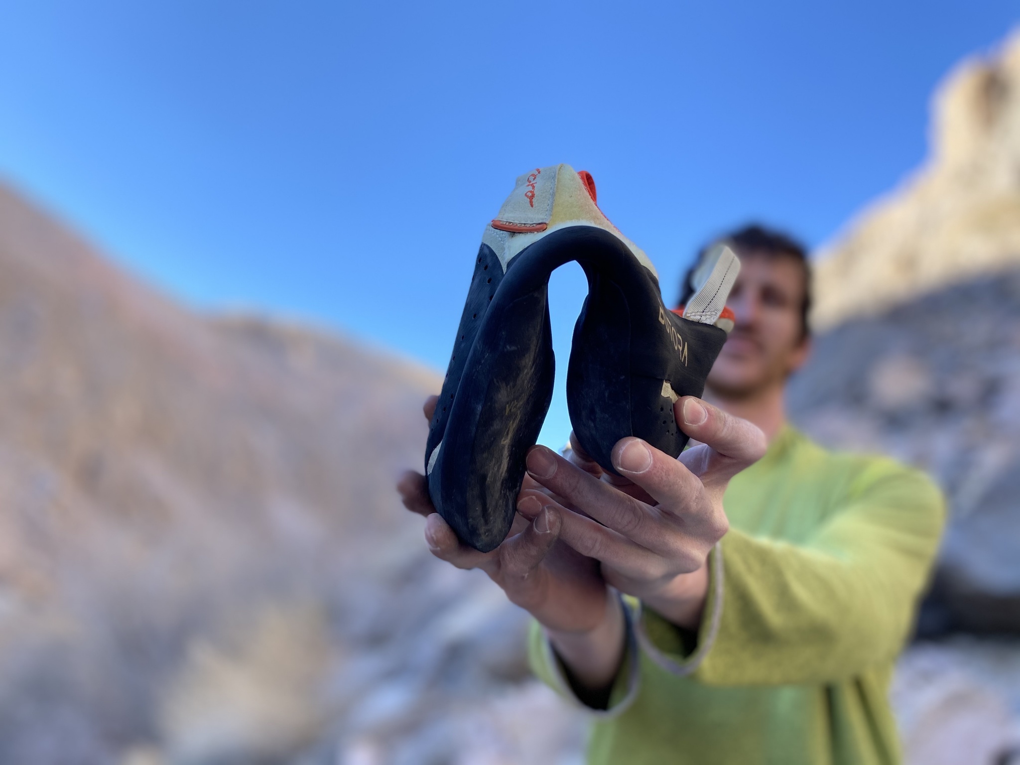 Edging is the Acro's strong suit. Their high tension rand keeps the big toe snug and secure at the power point. Combine that with a stiff midsole, and you've got a shoe that can handle the dime edges of dead vertical limestone at Wild Iris while remaining sensitive enough to feel divots and crystals on the quartz monzonite of the Buttermilk boulders.
