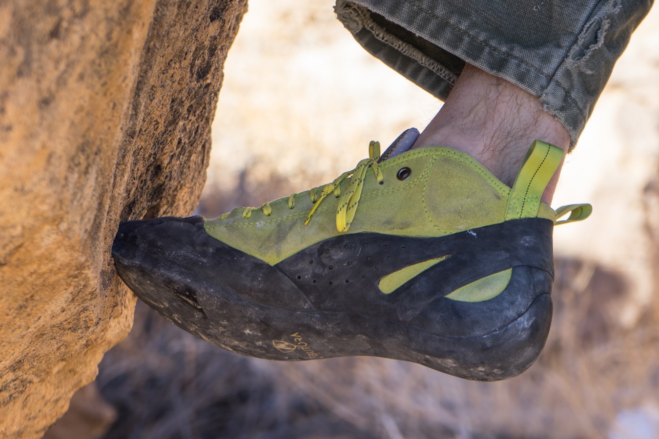This shoe shows plenty of obvious nods to the TC Pro with both its performance and general appearance, so this review will deal mostly with its advantages and shortcomings relative to the TC. In general, shoes of this style are decent for edging, great in wide cracks, and have a flat and comfortable fit.