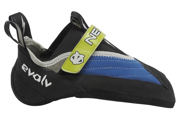 This ultra high performance shoe is the newest design in the Chris Sharma Series from Evolv. Evolv says it represents “a new way of approaching how we build shoes”. The aggressive downturned toe is similar to the Evolv Shaman but has a pointier more precise toe tip. With new design features the Nexxo could take it over as the top selling high performance shoe in the Evolv line. Both shoes are aggressive but the Nexxo has a thinner 1mm midsole and is therefore more conforming and sensitive than the Shaman that has a 1.5mm midsole. The Nexxo also has a custom variable thickness rubber sole. The other major difference is the single Velcro strap on the Nexxo compared to the triple Velcro straps on the Shaman. Since the shoes are already fairly tight the single strap keeps the weight of the shoe down and it works quick and tightens the shoe fine. The single strap on the Nexxo actually tightens the arch area so well it makes for a very snug fit. The single Nexxo strap is also not as thin as the single strap on the popular and also high performing La Sportiva Solution making it less prone to wearing through. The rubber on top of the Nexxo provides good coverage for toe hooking on steep terrain. The heel is a bit loose fitting. More tests with more testers will confirm or deny this.