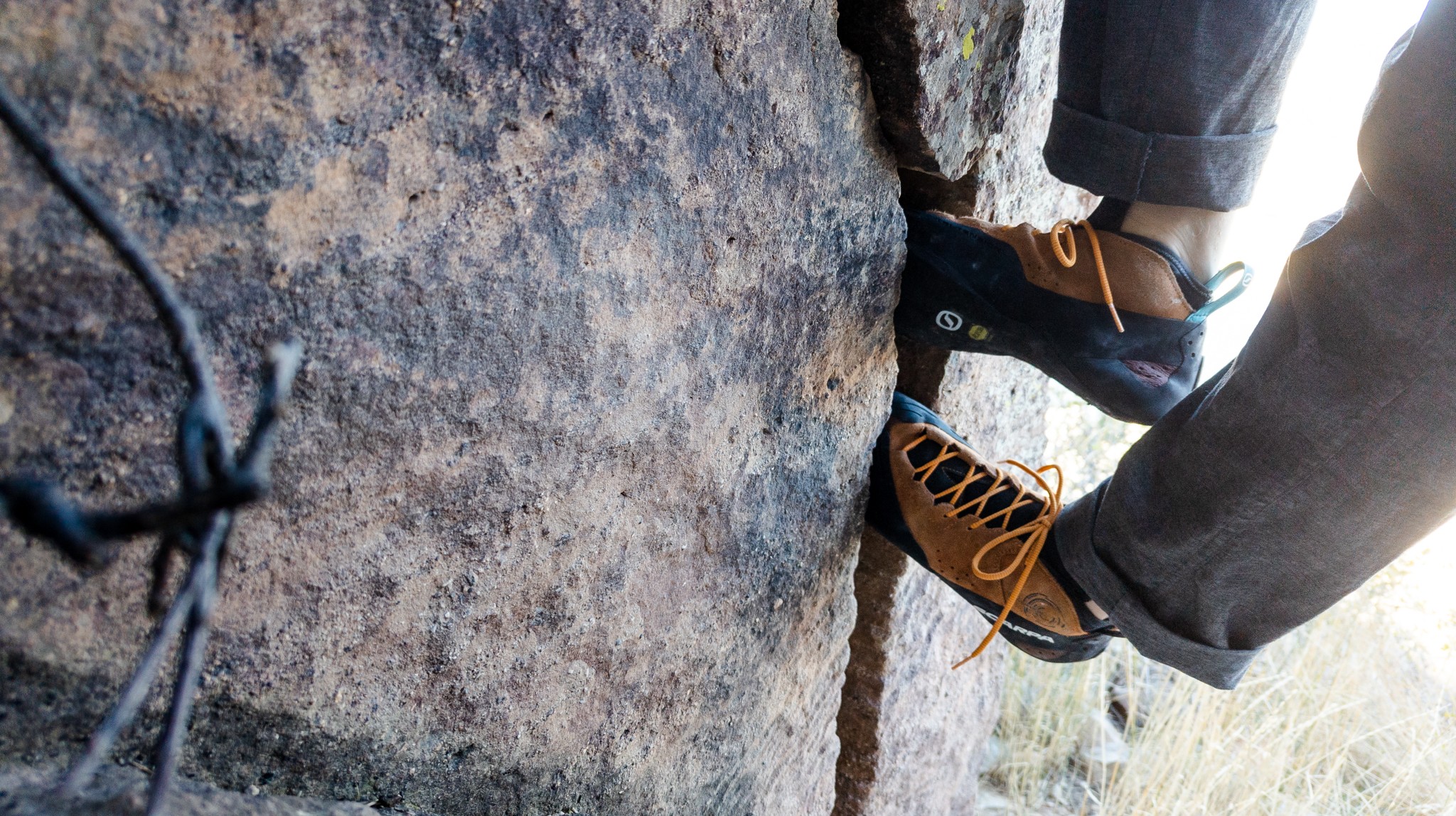 If you're going to be climbing granite, you best believe you're going to be smearing. Scarpa knew their market when they designed this shoe and they have made an excellent platform for the kind of slopey footholds we so often rely on while climbing technical granite faces. Stiffness can hinder sensitivity and smear-ability, but most flat shoes are able to overcome this after an adequate break-in period. While the Generator Mid is not the most sensitive smearer in this class of shoes, it does admirably well at the art of “smedging,” the technique we most often use on granite if we're not jamming. As an all-arounder, this shoe transitions well from edges to smears to jams, whatever the need may be.