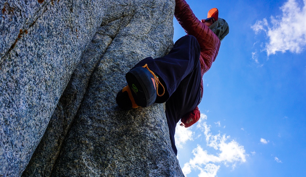 The awesome edging ability of the lace-up Instinct is partially due to its stiff forefoot. This stiffness, unfortunately, reduces sensitivity by a modest degree. We were still able to detect small micro features, but the sensation is not as strong as with an ultra-soft slipper design. From the arch to the heel sensitivity is higher because the construction changes from 3.5 mm of sticky rubber to 1.0 mm of Flexion. This thinner material also gave us greater freedom to flex our feet and adjust their position to the angle of the terrain.