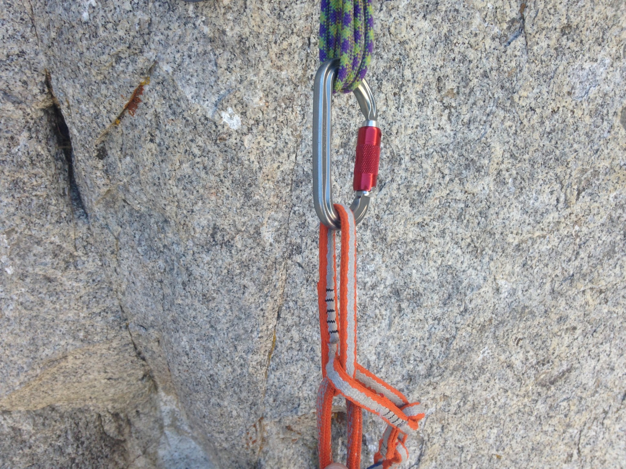 With a gate clearance of 2.5 cm, the Petzl Am'd has the widest opening of any locker in our review. We really liked this fact when we had to clip into fat master points on anchors that were made from thick static rope or cordalettes, or at fixed anchors comprised of many slings. It also made it easy to capture multiple bight knots, such as when clipping backup knots ascending ropes with mechanical ascenders. The BD RockLock has a slightly smaller opening with 2.3 cm of clearance.