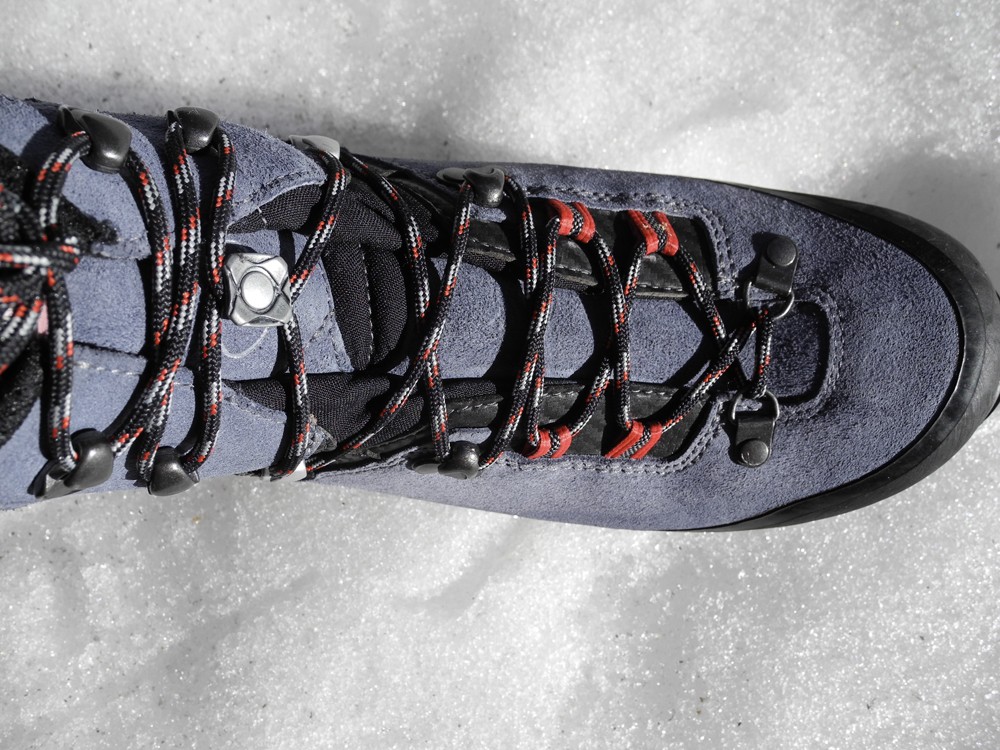 Overall, we found the Lowa boots to be durable and hold up to hard use well. The one problem we foresee is that the webbing loops that hold the 3rd metal lace loop seem vulnerably placed, and could be snagged by sharp crampon points.