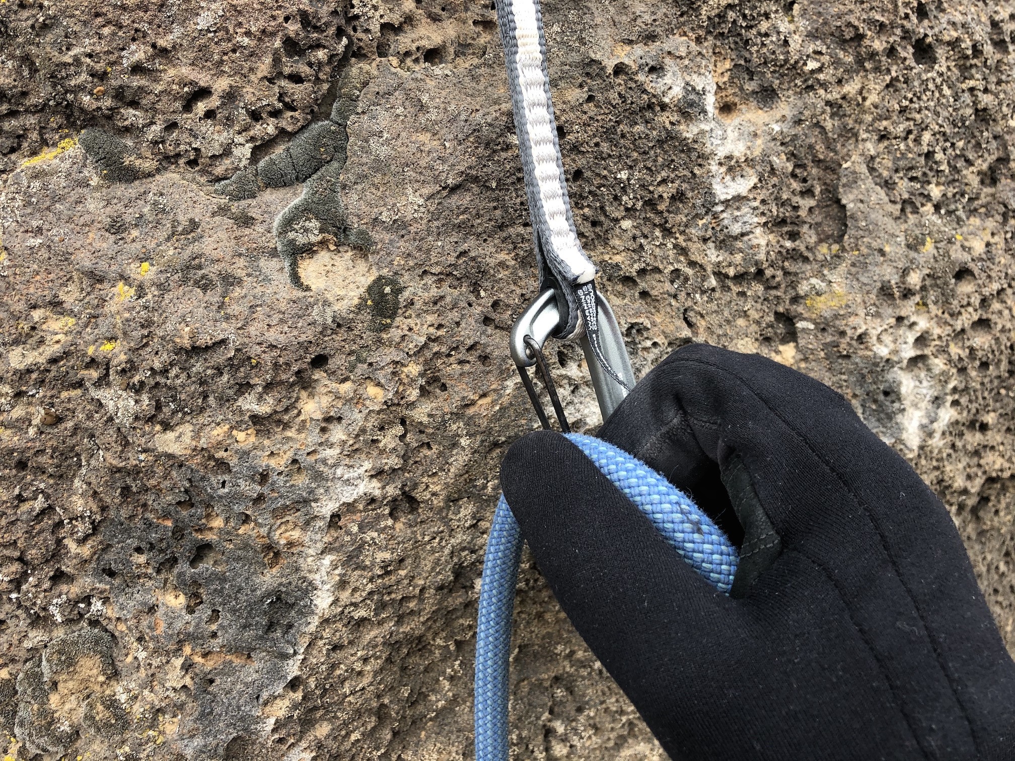 We would go so far as to call these the hardest quickdraws to effectively and quickly clip. The main culprit is the tiny MiniWire carabiners, which are not surprisingly also the smallest in this review, even smaller than the other lightweight options we compared them to. At times, it can be hard to get the rope through the gate without also getting one's fingers stuck. Combine the tiny size with a tight gate spring, present on all of BD's newest offerings, and a perfectly straight wire, rather than a bent wire that helps ease opening like some others have, and you are left with a difficult clip. We also notice that it's hard enough with bare hands, but alpine and ice climbers will have an even harder time with bulky gloves on.