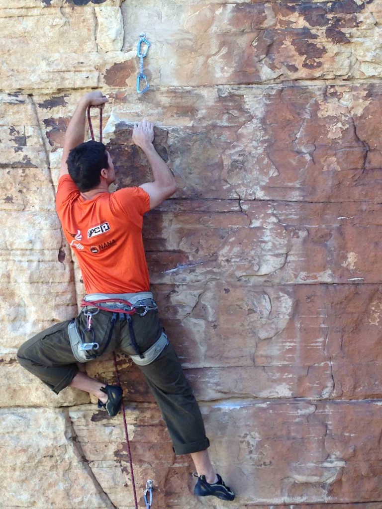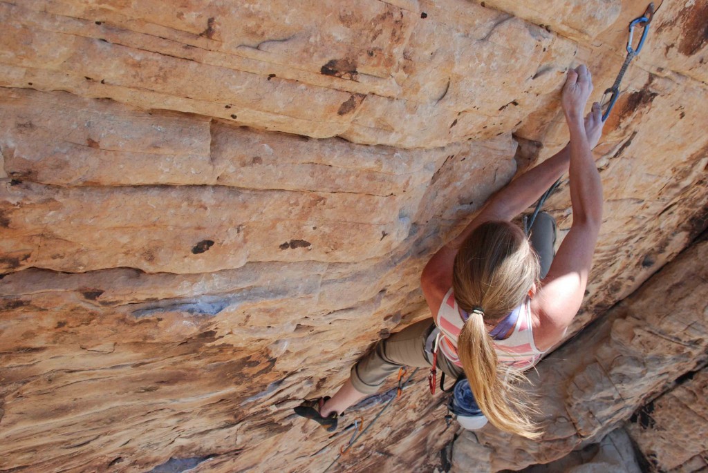 The PosiWire in its ideal element: vertical sport climbing. Credit: Scott Ring