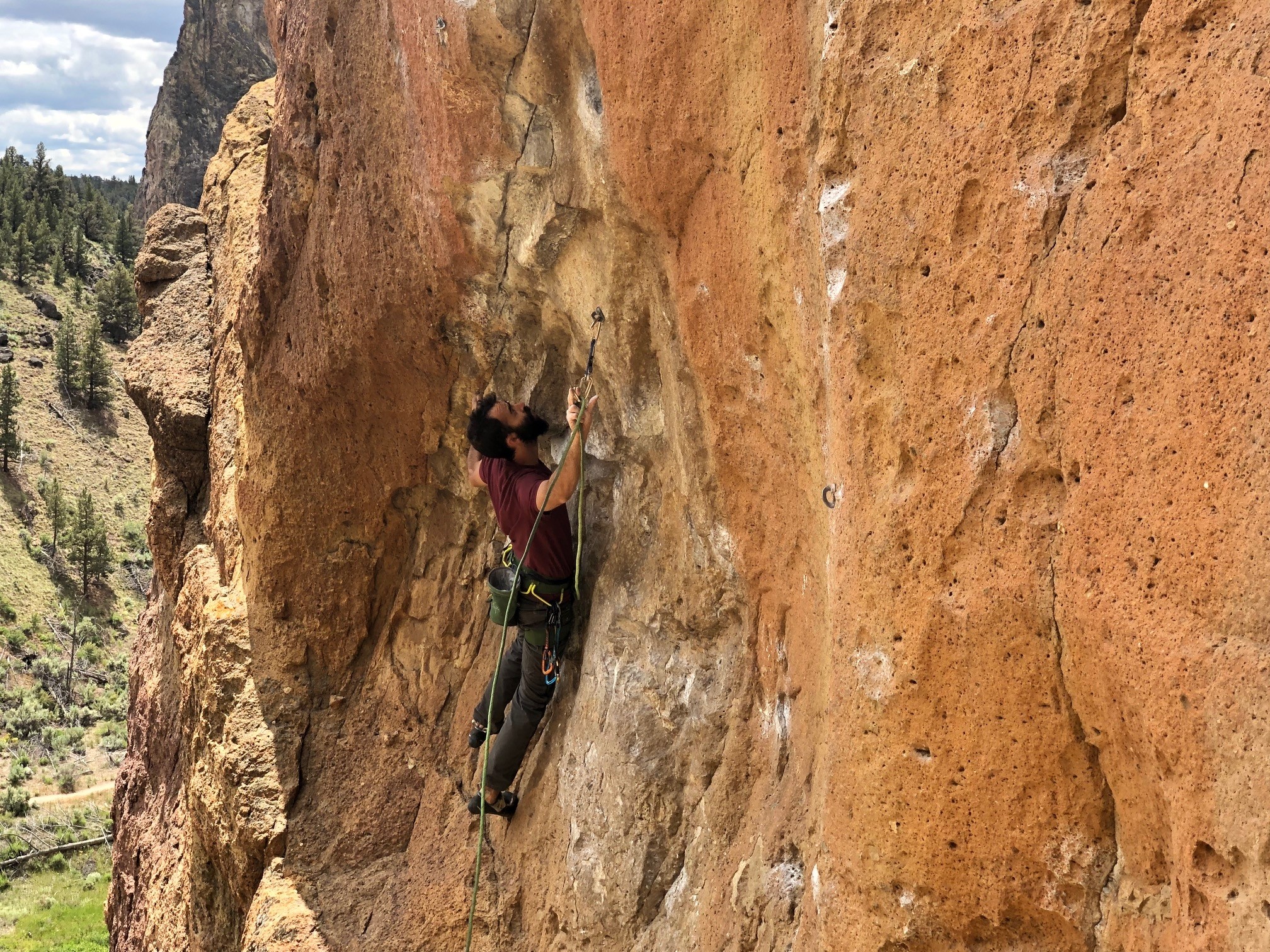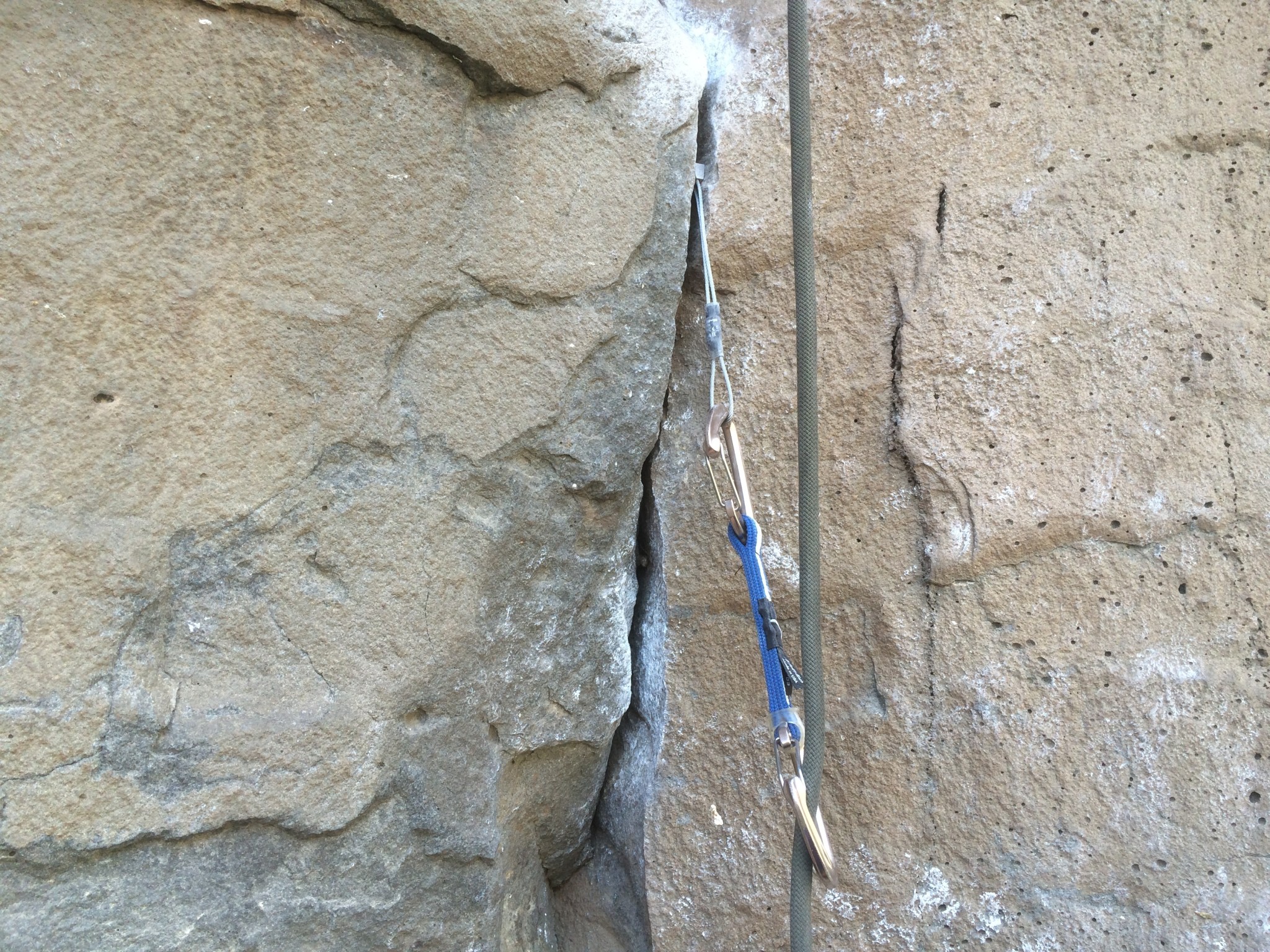 This is an easy quickdraw to clip the rope into. While it has a relatively small amount of gate clearance (21mm), which is a serious flaw for other carabiners with the same amount, the angle of the gate more than makes up for it. Rather than orient the wiregate vertically like most carabiners, Metolius has oriented these gates almost 30 degrees, so that pressing the rope against the gate means that it can fall straight down into the deep basket of its own accord. The spring action on the gate is stiff but snappy, like most wiregates, making a satisfying sound after it snaps back closed.