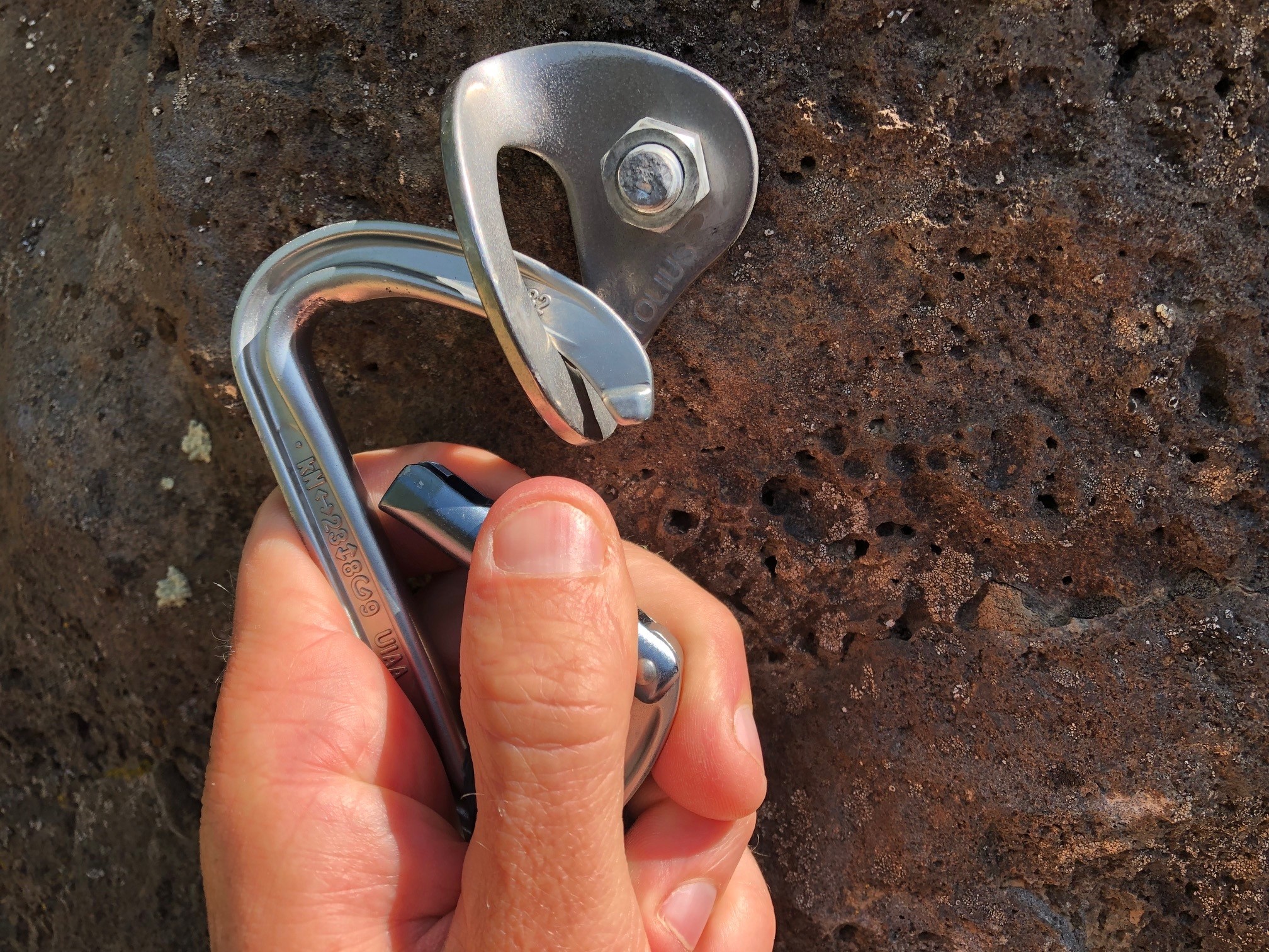 The current Spirit carabiner was updated several years ago now and uses the latest “I-beam” construction to reduce weight. At 3.2 ounces per short quickdraw, it's about one ounce lighter than most of the other high-performance sport draws out there. That means that you'll save about half a pound with a dozen of the Spirits on your harness instead of the other ones.