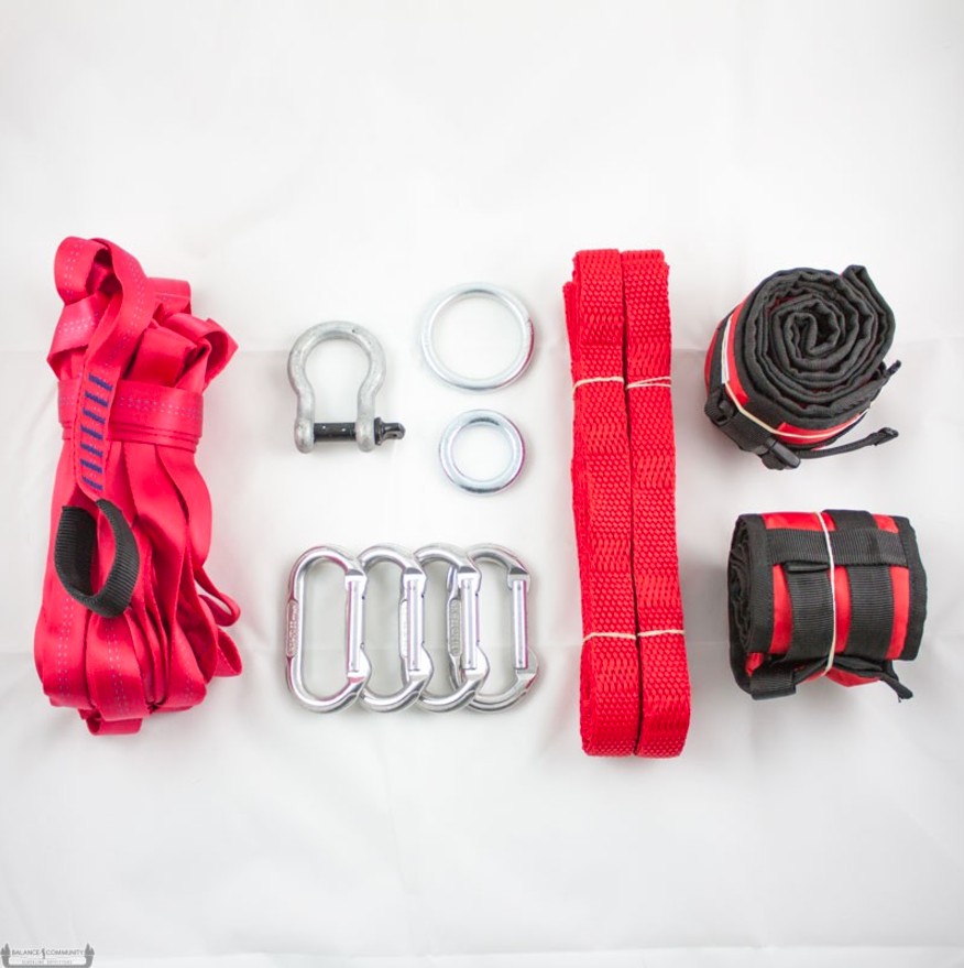 Balance Comunity recently joined forces with Pure Slacklines meaning there are some new updates. They now use their Lift Webbing, which has a softer knit and great elasticity for tricks and surfing. Another new addition to this kit is slackline specific carabiners instead of basic ovals. Now one side of the carabiner is flatter to allow the webbing to glide smoother when tensioning.