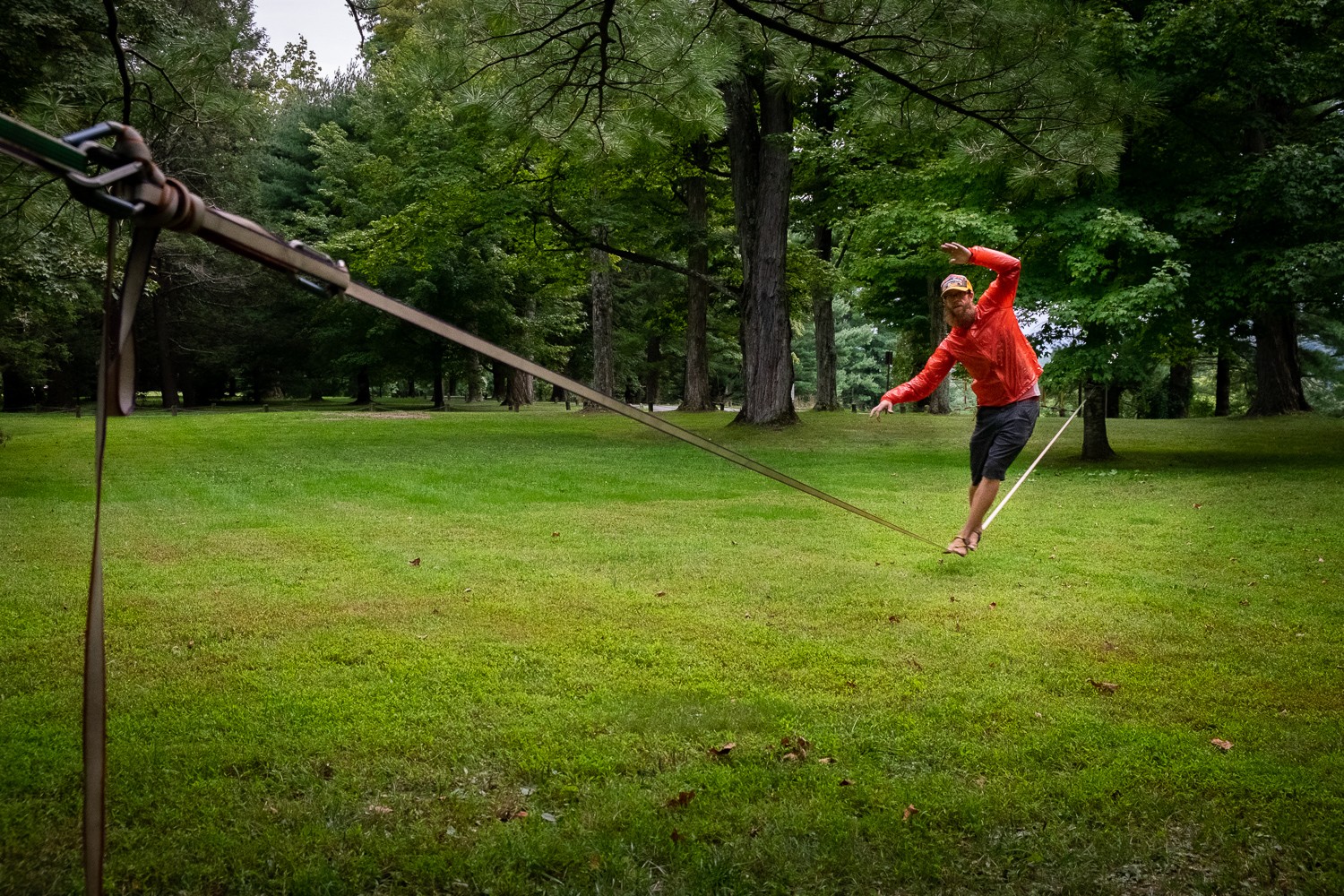The Primitive Kit is one of the most versatile lines we tested. If you are looking to learn, set it up short, but the long length of this kit allows you to progress through the sport to walking long(ish)-lines. The webbing is 75', and when you account for line lost in the tensioning system and the tree anchors, etc., this line can span a gap of almost 70 feet. If 70 feet isn't quite long enough for you, Balance Community offers longer kits or components to customize your own.