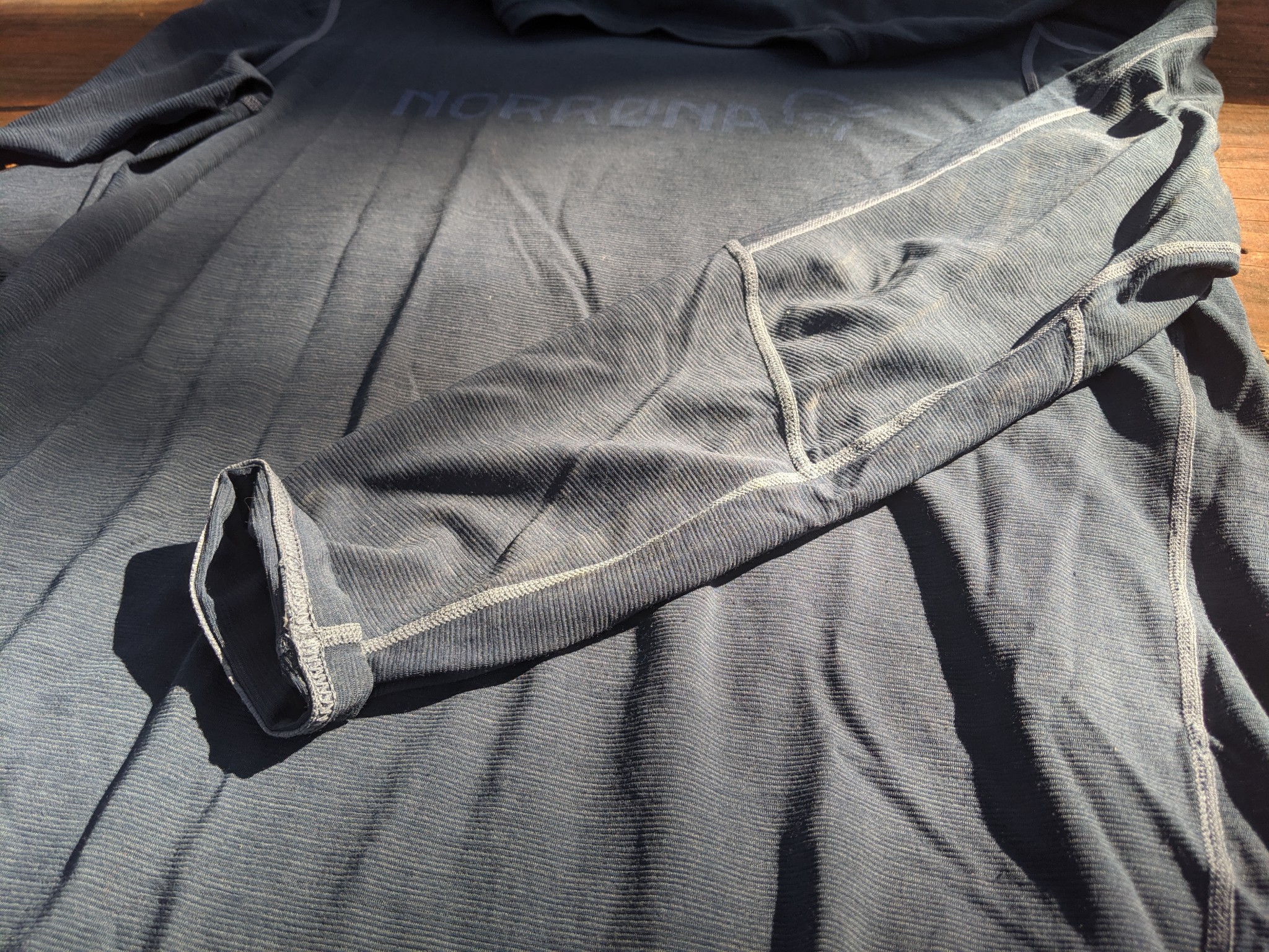 These findings were backed up by our lab testing, where the Equaliser dried out faster than any other layer — wool or synthetic — in an impressive 25 minutes, in direct sunlight. Norrona doesn't recommend putting this top in the dryer, and with its already-almost-too-tight fit, we're keen on taking their advice. To help prevent this urge, the designers included a small loop on the hem of the shirt to help properly dry this layer out, anywhere that you have access to a coat hook or tree branch.