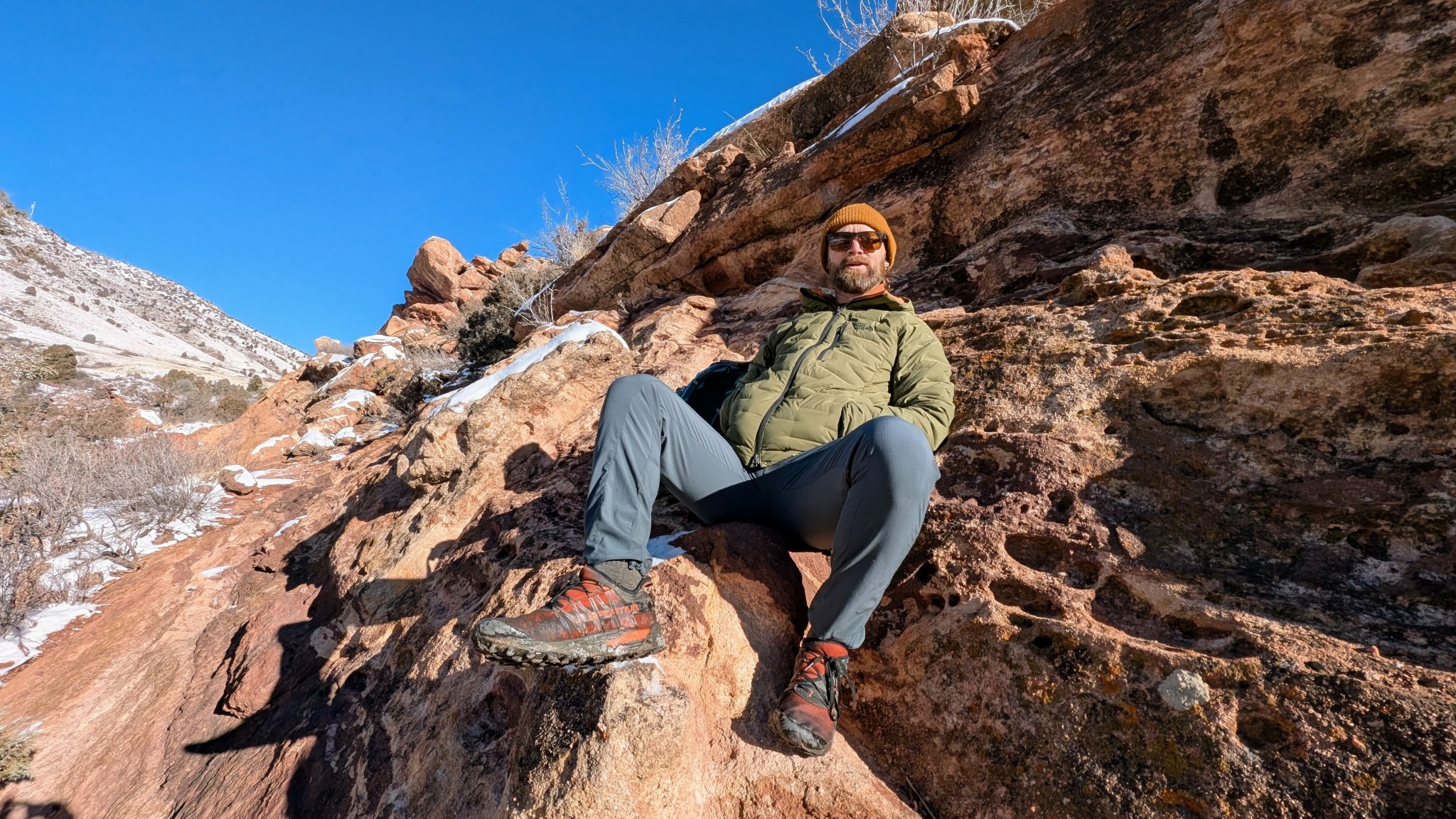 Most down jackets I tested only have a single zipper. But the Strechdown Hoody features a two-way zipper, so you can choose to vent from the bottom, top, or both. I appreciated the ability to vent my core while keeping my neck covered. And if I ever felt like I was close to overheating, I unzipped the jacket from the bottom and top, leaving it closed near the bottom of my ribcage. This allowed me to dump heat quickly, without the jacket flopping around as I moved.