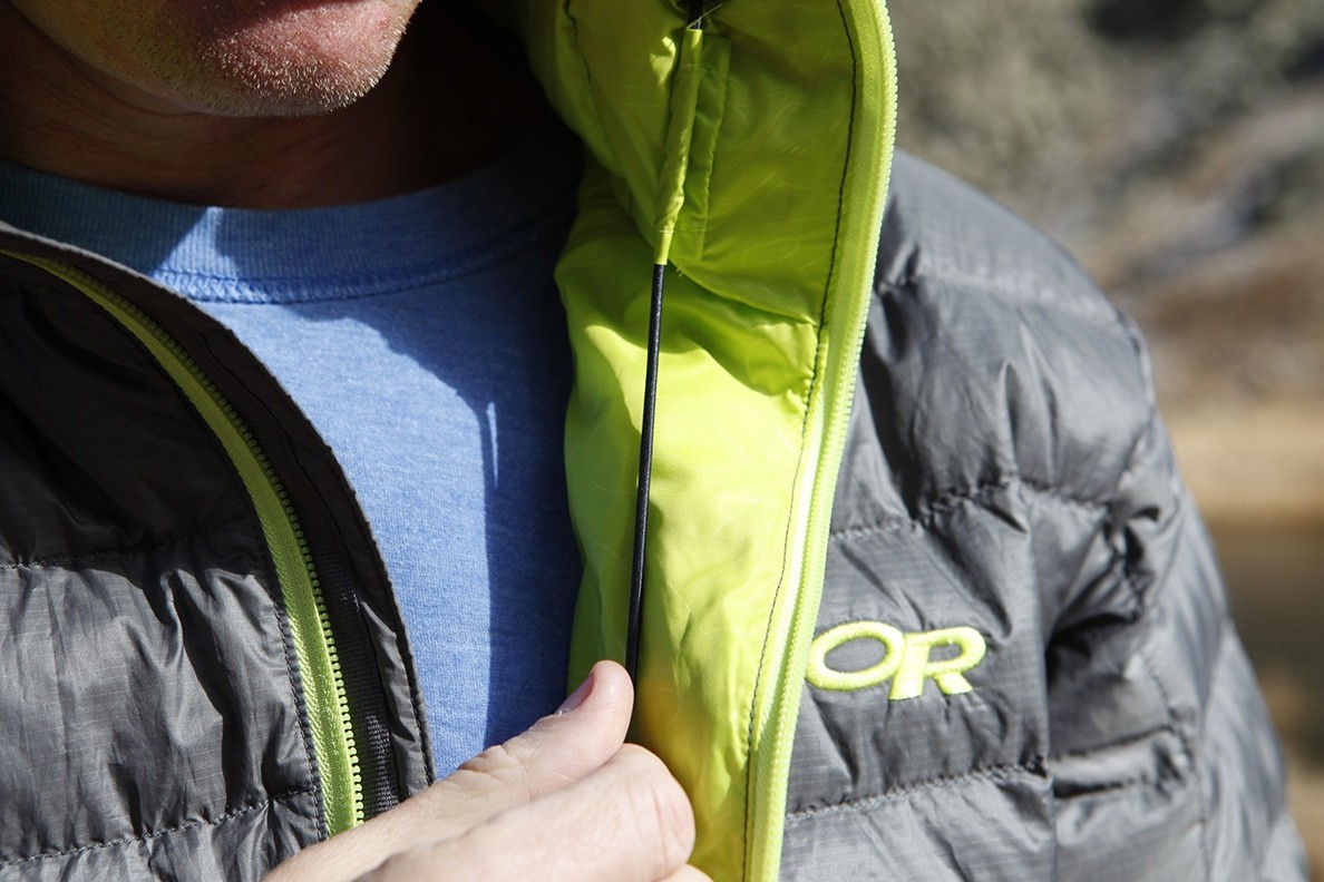 Despite having a DWR coating applied to the outside shell of the jacket, we found that in a light rain it was less effective than most, and the fabric was quick to absorb water like the Mountain Hardwear StretchDown Hooded. Not only that but OR chose not to use hydrophobic down in this model. Don't ditch the rain shell if wet precipitation is in the forecast. Five out of 10 points.
