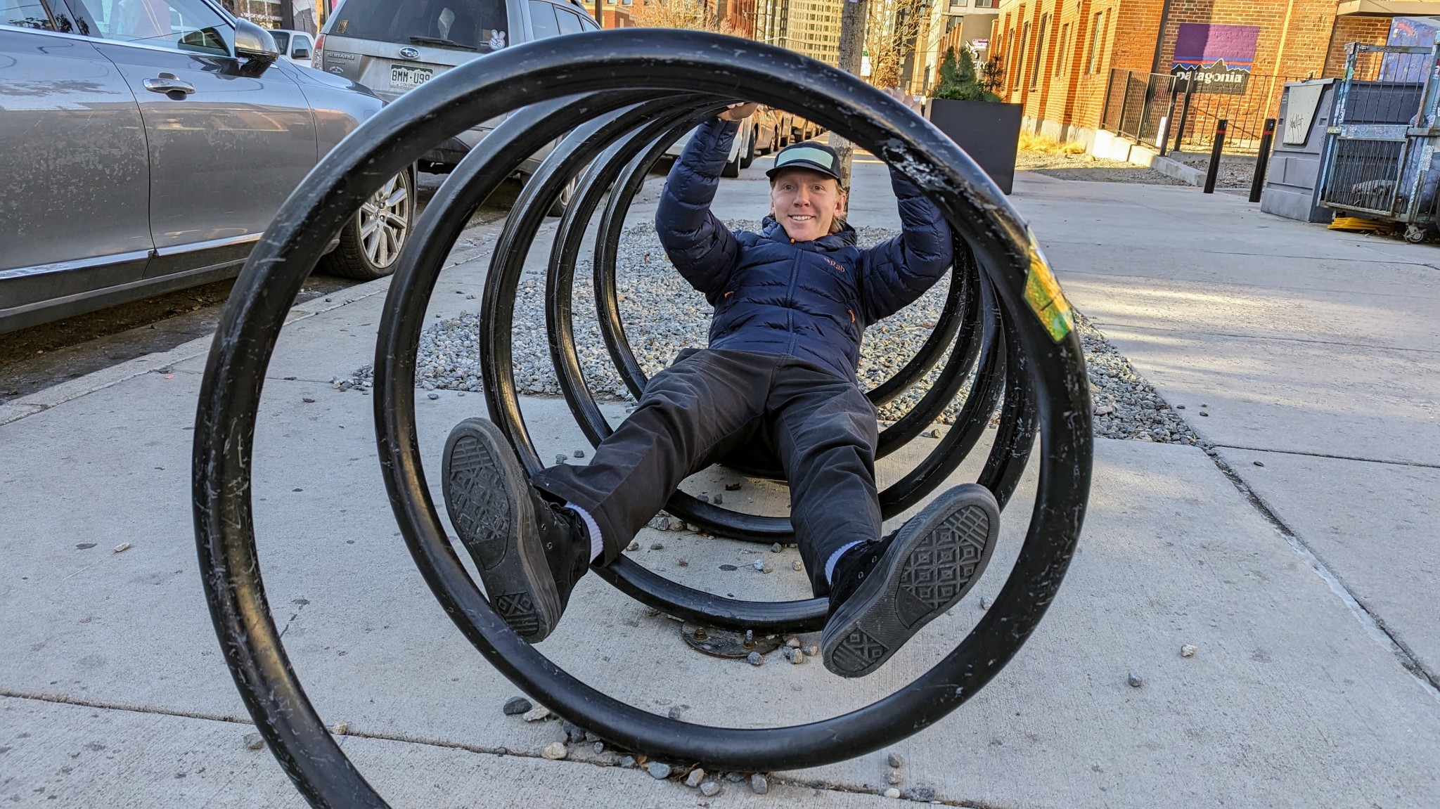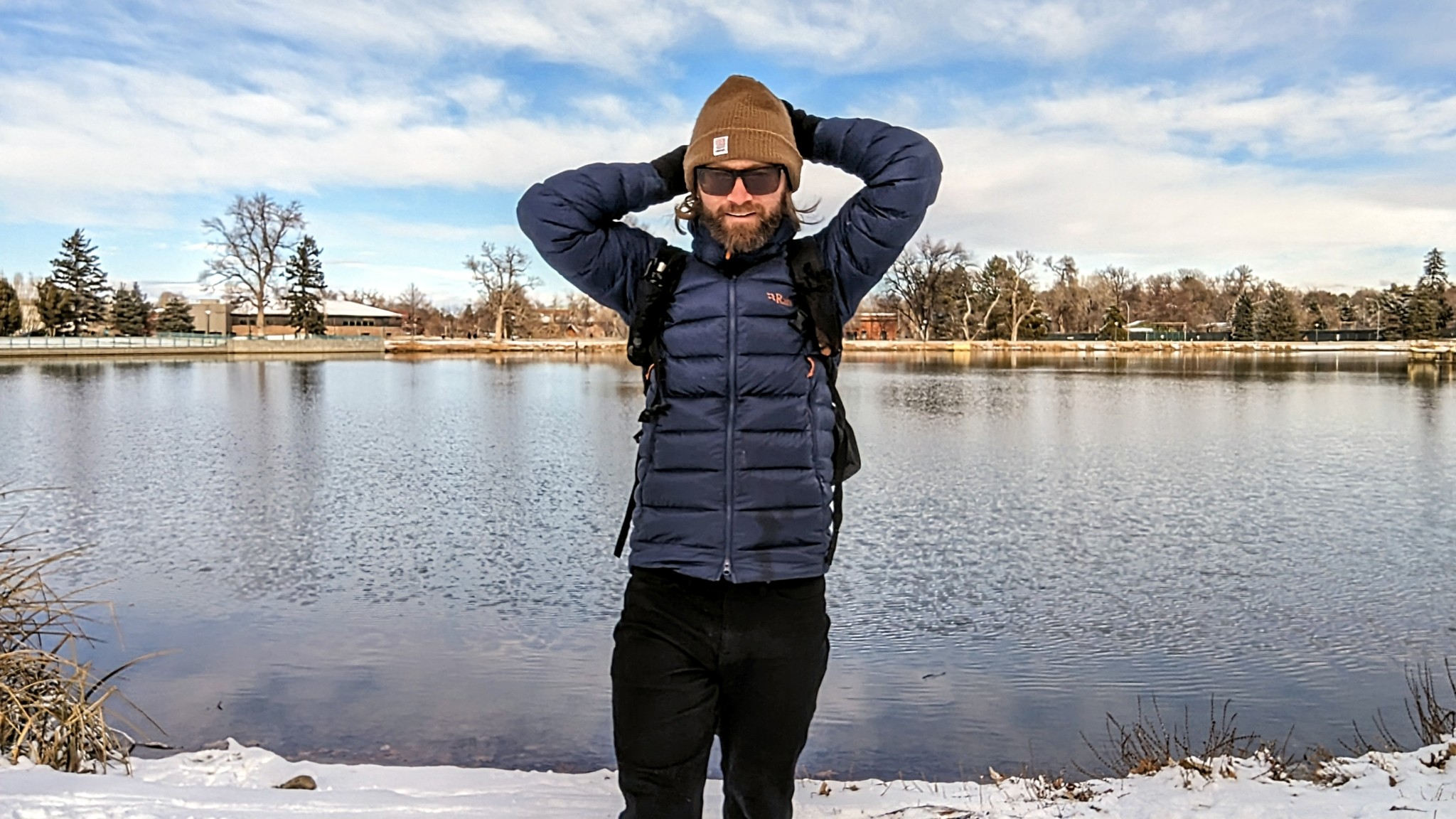 This is one of the longer jackets we tested, and it has a large drop hem in the back. We found this helped seal in more heat while moving around. This is perfect for cold bike rides where you're leaning over the handlebars. The extra length helps keep you warm during cold belays as well.