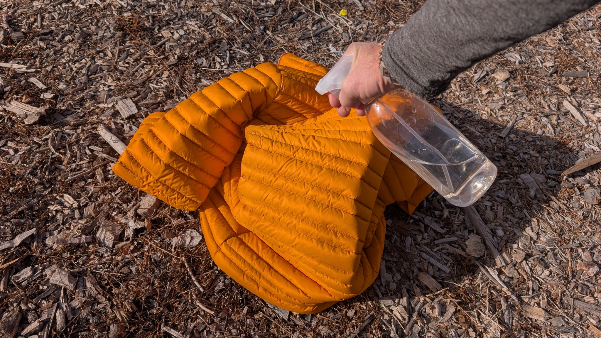 During waterproof testing, the Pinion performed very well, with water beading up and rolling off the shell even after I attempted to rub it into the material. Again, when moisture eventually penetrates the shell's DWR coating, the hydrophobic down treatment helps maintain loft and insulating properties longer than untreated down.