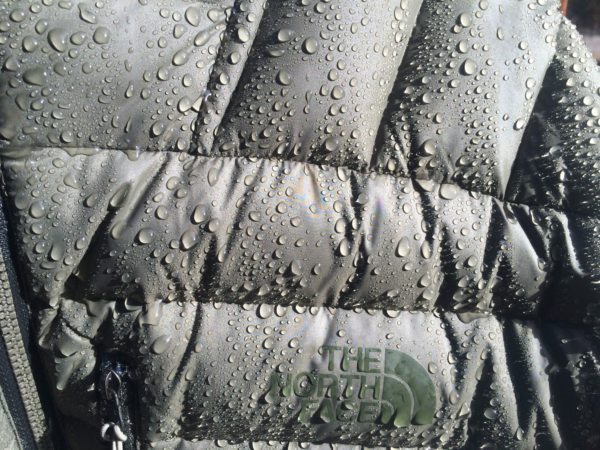 We felt that this jacket had one of the best DWR coatings that we tested. Despite conducting our testing for this metric at the end of an intensive three-month review period, the DWR coating stayed nearly perfectly intact, causing water to quickly bead and fall off, without absorbing into the nylon face fabric. In this regard, it was equal to the performance of the Mountain Hardwear Ghost Whisperer Hooded. However, it does not use hydrophobically treated down, like that found in the Marmot Tullus Hoody. The end result is that we gave it a highly respectable 8 out of 10 for water resistance, but would still baby it a bit in wet conditions or climate.
