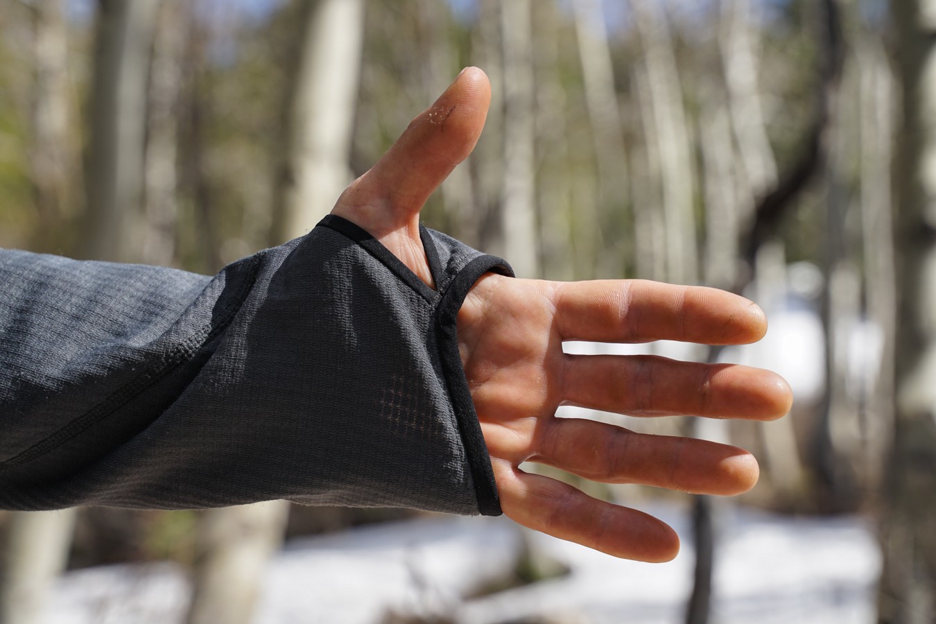 This fleece earns top marks for layering due to its near-perfect fit. When we used it under a shell or puffy, we had no excess material bunch up in the sleeves, shoulders, or around the waist. The hard-faced fleece exterior glides smoothly into any shell, and the thumb loops make sure your sleeve stays down. For these reasons, this is one of the best layering pieces in our comparison.