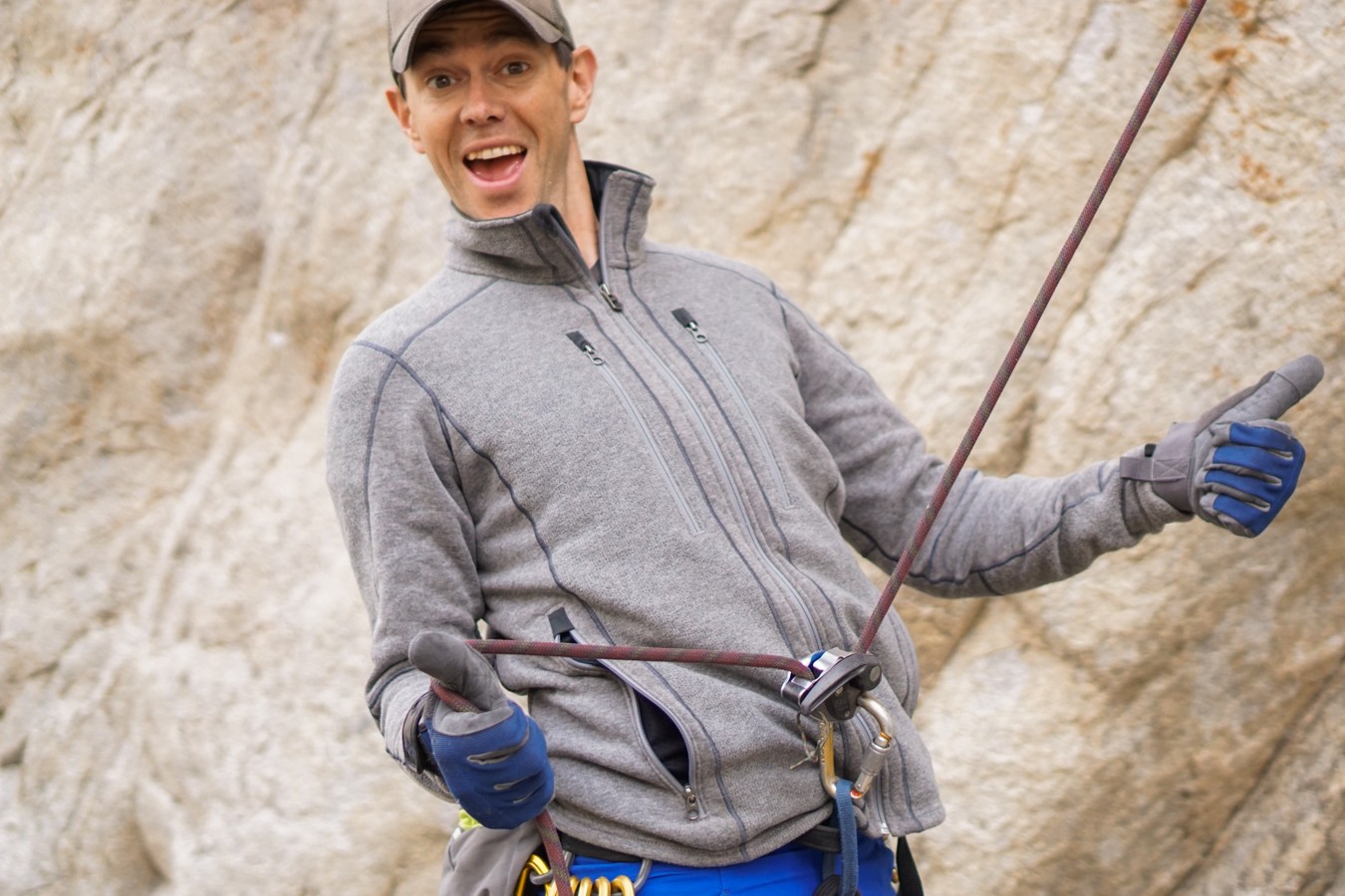 This fleece has a relaxed fit that is almost too relaxed for layering but feels great on top of a t-shirt or a light sweater. The hemline sits well below the hips, adding to its warmth and causing it to sit nicely under a climbing harness. This jacket has four big pockets, two zippered handwarmer pockets, and two chest pockets. You carry two water bottles and plenty of snacks in the massive pockets of the Interceptr.