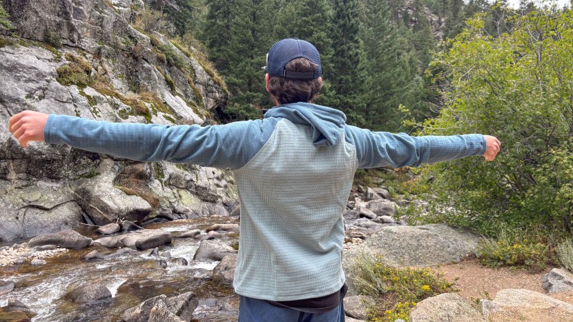 We were able to move any way we wanted in the Summit Grid, thanks to its fairly relaxed fit and fabric that didn't bunch too much. While there was some tension with our arms crossed, the stretchier fabric didn't inhibit any of our movement, further making this a very comfy layer. The hood was equally supple and was easy to fit directly onto our heads or (more tightly) over a hat. The drawstrings on the sides were effective at adjusting the hood just how we wanted it.