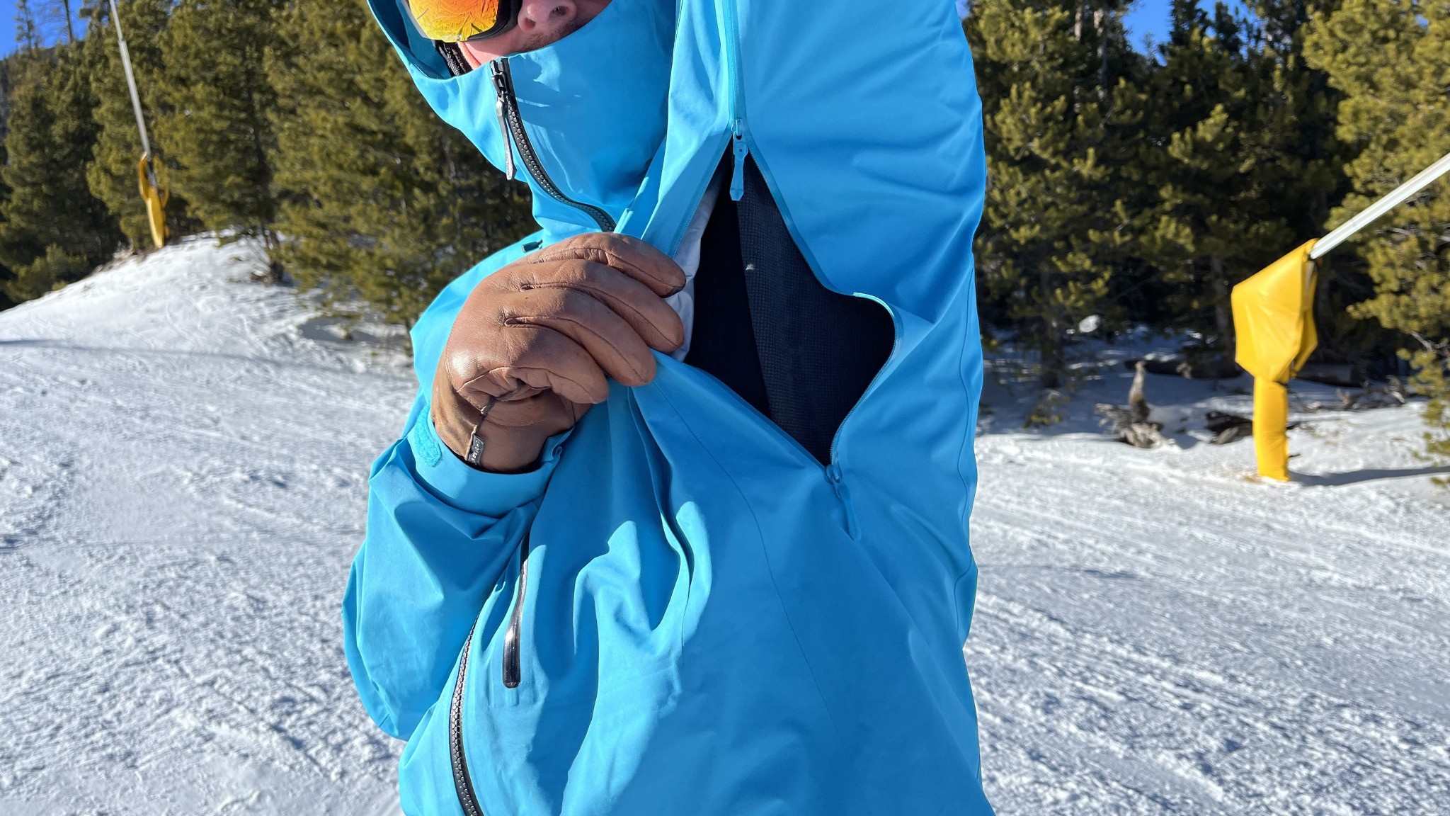 Without the restrictions of ultralightweight targets, the designers of the Alpha SV had the freedom to add a few nice features. Besides the large pit zips that boost your venting options, other design features we appreciate are the large chest pockets with central zippers (compared to zippers on the sides of the chest) that are easy to use. We also love the sleeve pocket for resort skiing, which makes using an RFID pass card a breeze.