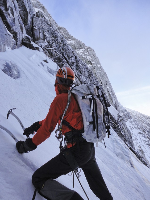 The Quasar's fit is trim and athletic. This is not a shell for burly people with especially broad shoulders. Wearing the jacket, one feels light and free. The thin face fabric is softer and quieter than expedition mountaineering shells like the Rab Latok, Arc'teryx Alpha SV, and Patagonia Super Alpine. It feels like you're wearing a windbreaker — except the shell is waterproof. One of our testers fell in love with the Quasar and nearly refused to use any of the other 18 shells the rest of us tested.