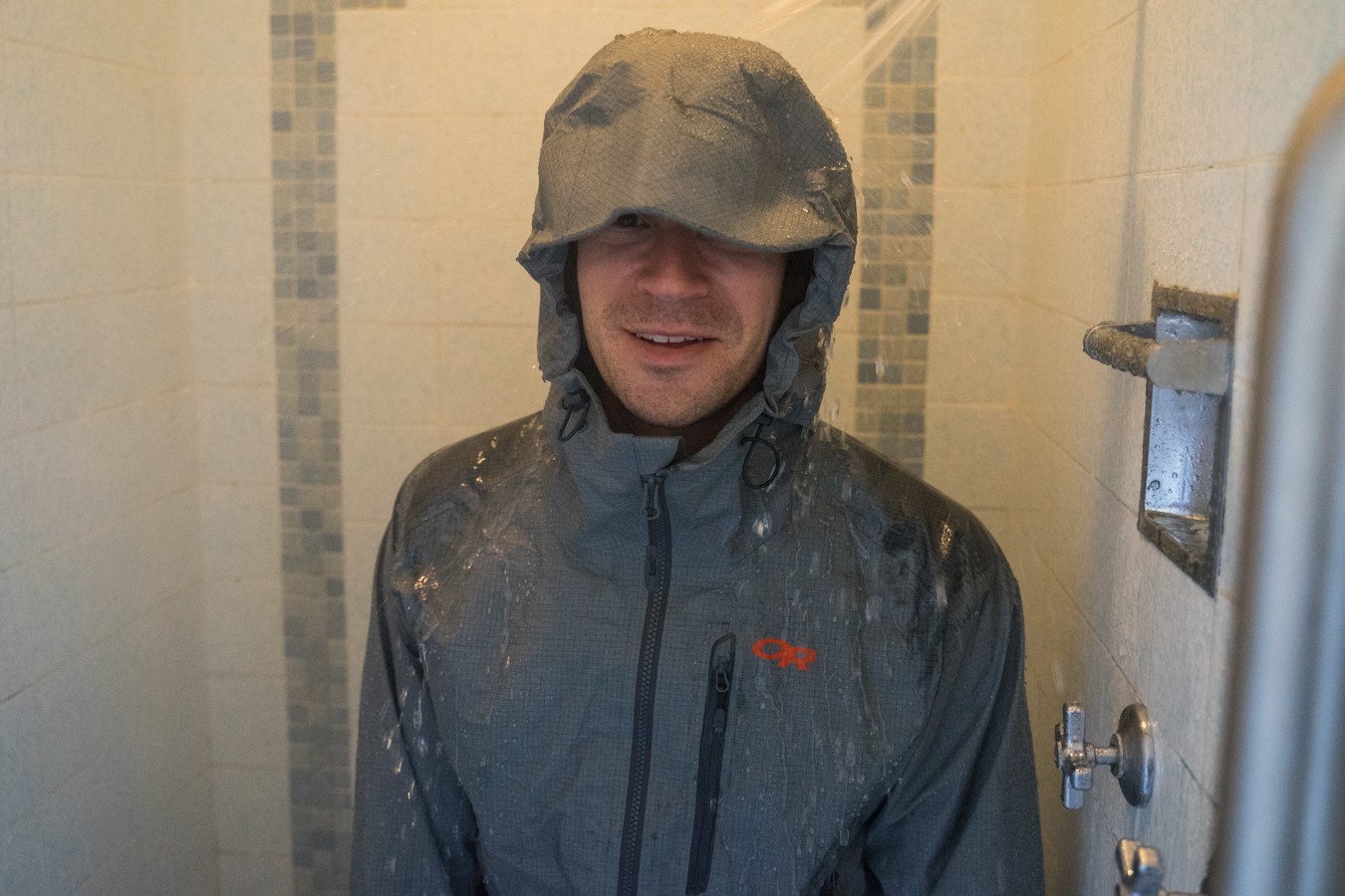 No pit zips? No problem. We didn't miss them because of the thinner 20D fabric and the Gore-tex Active membrane. Additionally, the handwarmer pockets can act as vents in a pinch. Like the Arc'teryx Alpha FL, the Optimizer is a jacket we can leave on, even while skinning up steeper terrain. OR gear is designed by folks in the Pacific North West, where it rains so much they had to invent coffee shops, so even on a good day, you're going to want to leave your hardshell on.
