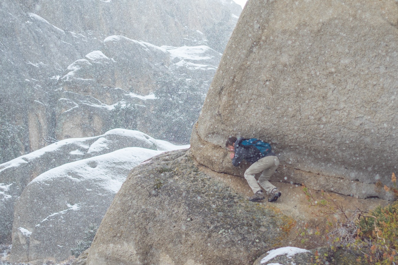 A little stretch gives this model a considerable advantage in terms of mobility. Even with an insulated jacket layered underneath, we had complete range of motion to reach high above our heads, even with a pack on with the waistbelt cinched down. This is awesome for any type of climbing since the stretch lets you move around without causing the sleeves or the hem to ride up, exposing your vulnerable flesh to the stinging cold. Patagonia says this jacket has a “slim fit”, but we had no trouble layering it over a fleece and an insulated jacket. There is more space in the Galvanized than the same-sized Arc'teryx Alpha FL, but it doesn't feel baggy like the REI Stormbolt.