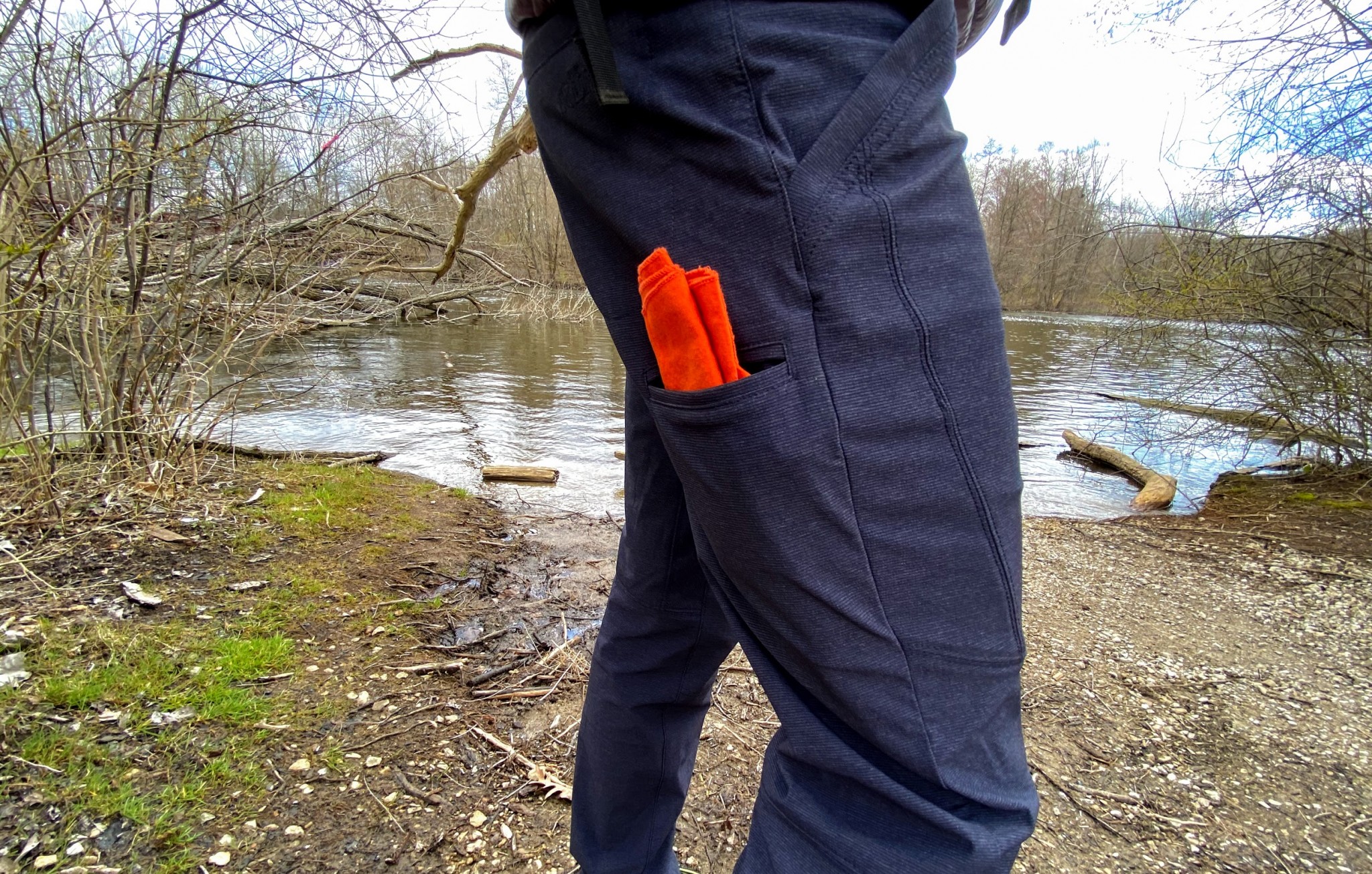 These pants offer a midweight fabric with a small amount of polyester. What this means in practice is that they are more breathable than they initially appear.