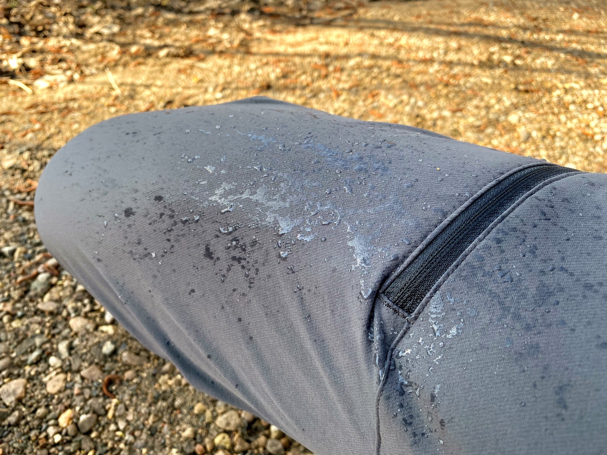 We were also very pleasantly surprised by how wind-resistant they are. Though this is not entirely unique to this model, the difference is that because of the weave of the inner fabric, it doesn't feel cold when the wind is pressing it against your body. The DWR coating is solid, not spectacular, but we found in practice that the fabric is thick enough and dense enough that moisture struggles to penetrate, even in moderate to heavy precipitation. Having said that, this pair also takes longer than average to dry out due to its thicker fabric.