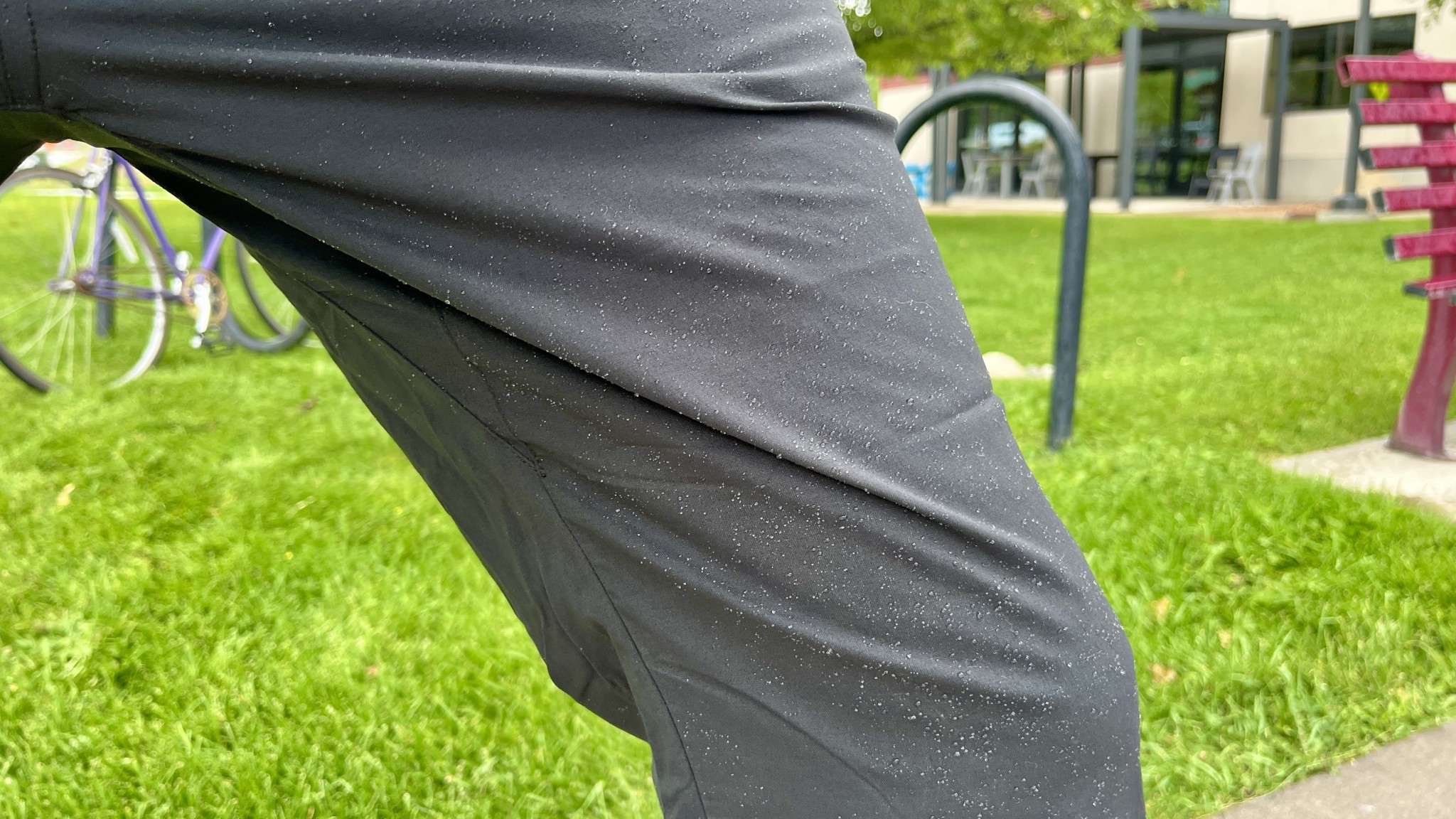 Thanks to a good factory DWR treatment, the REI Trailmade Co-op resists water absorption fairly well out of the box. In light rain, we noticed that the material didn't absorb water unless we rubbed it into the fabric. Heavy rain and soaking water will get through, and the pants aren't waterproof, but they are weather-resistant enough to help keep you dry in light rain and while walking through dew-covered vegetation.