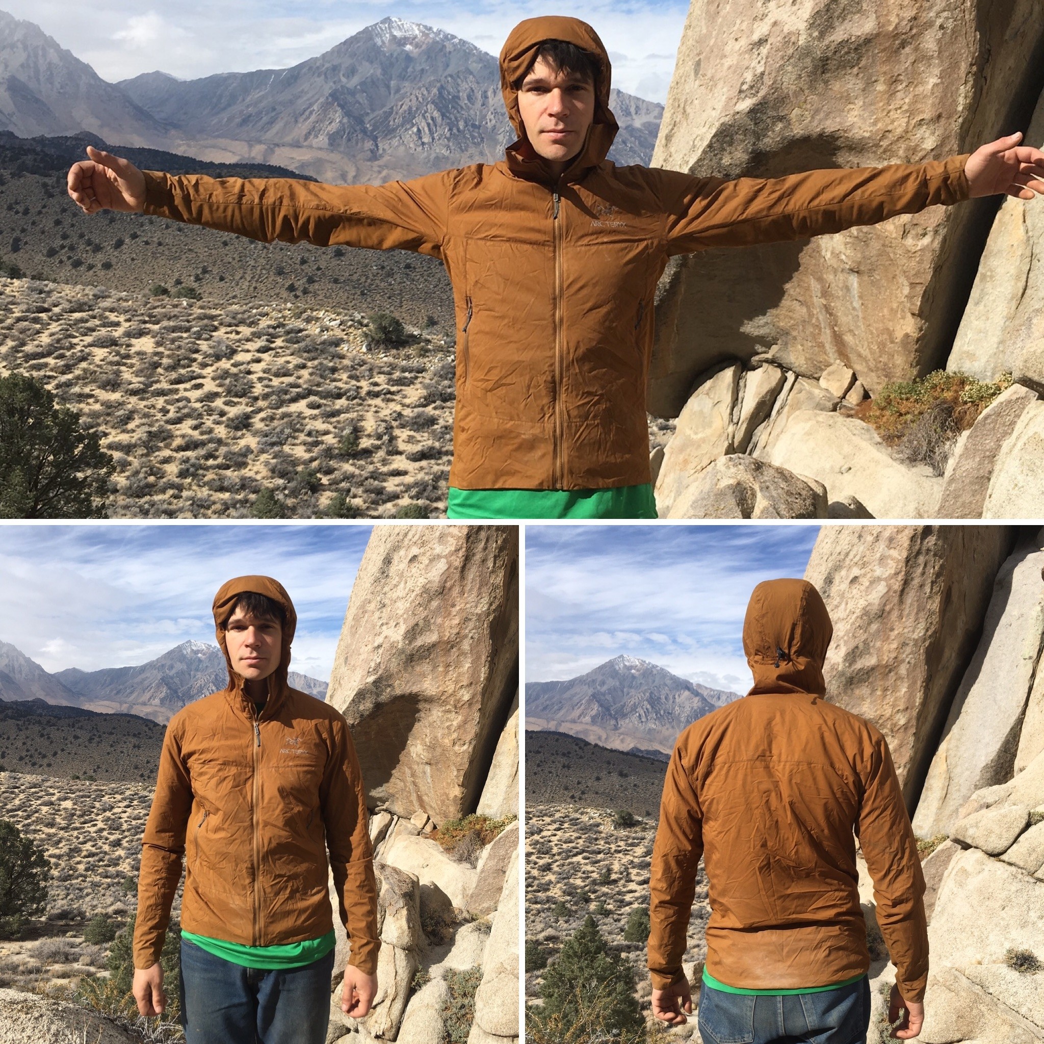 At 8.6 oz, this jacket came everywhere with us and it was easy to forget about when stuffed down to the size of a grapefruit in the top of a pack. We really wish there was a stuff pocket with a clip in loop so we could clip this jacket to a harness when the sun comes out. The Atom SL is 4.9 oz lighter than the Patagonia Nano-Air Hoody, and it takes up about half of the space of the Nano-Air when stuffed into a pack. It takes up about the same amount of space as the Outdoor Research Cathode Hooded Jacket.