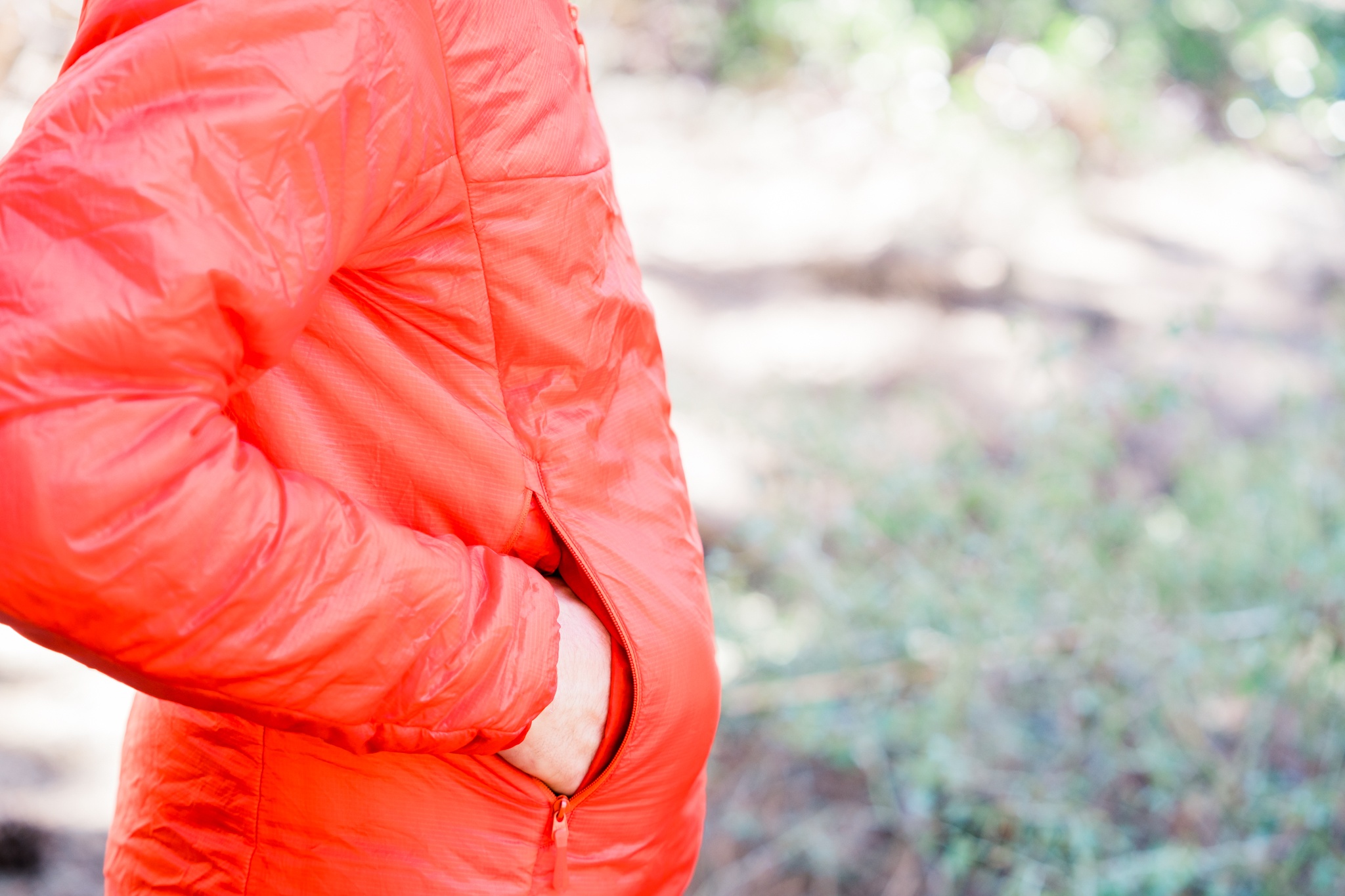 Though not as comfy as a soft, breathable jacket, the Nuclei feels nice against the skin, and its Arato 10D ripstop shell fabric doesn't feel like a crinkly garbage bag. In the past, a few of our testers have lamented that Arc'teryx jackets fit a bit short at the hem. The Nuclei felt about perfect under or over a climbing harness, and it tapers down in the back for extra bum warmth.