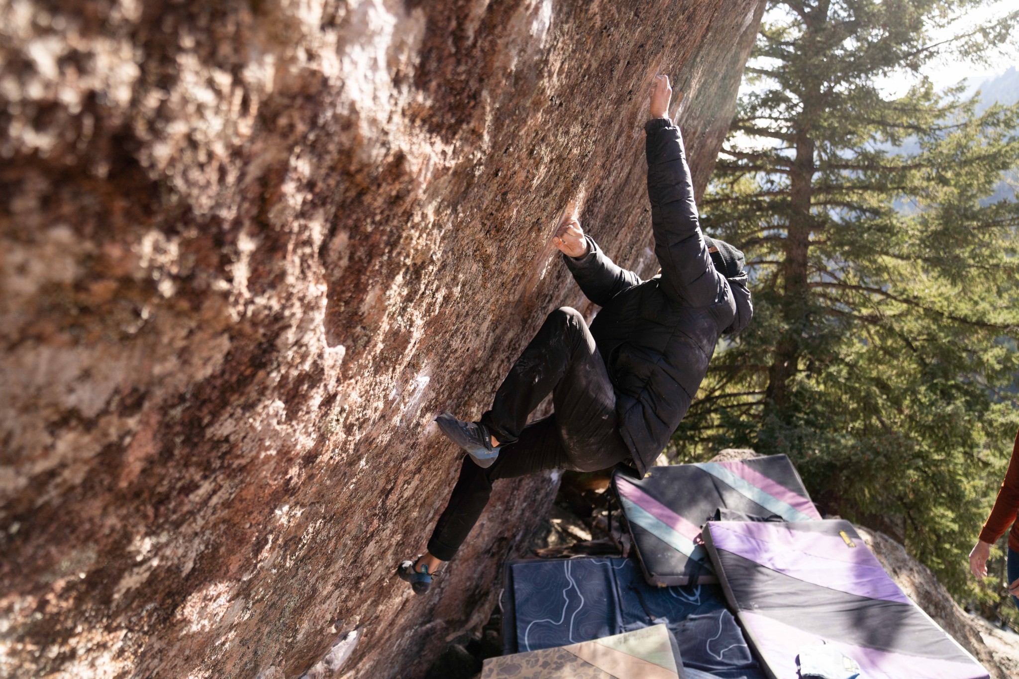 While moving, the jacket's bulk got in the way. We tested this jacket while bouldering outdoors on a cold day, and its heaviness seemed to prevent us from climbing at our best. But, that's not what it's designed for. Columbia intended this jacket to be more of a warm wear piece than an activewear jacket, so don't expect a ton of mobility out of it.