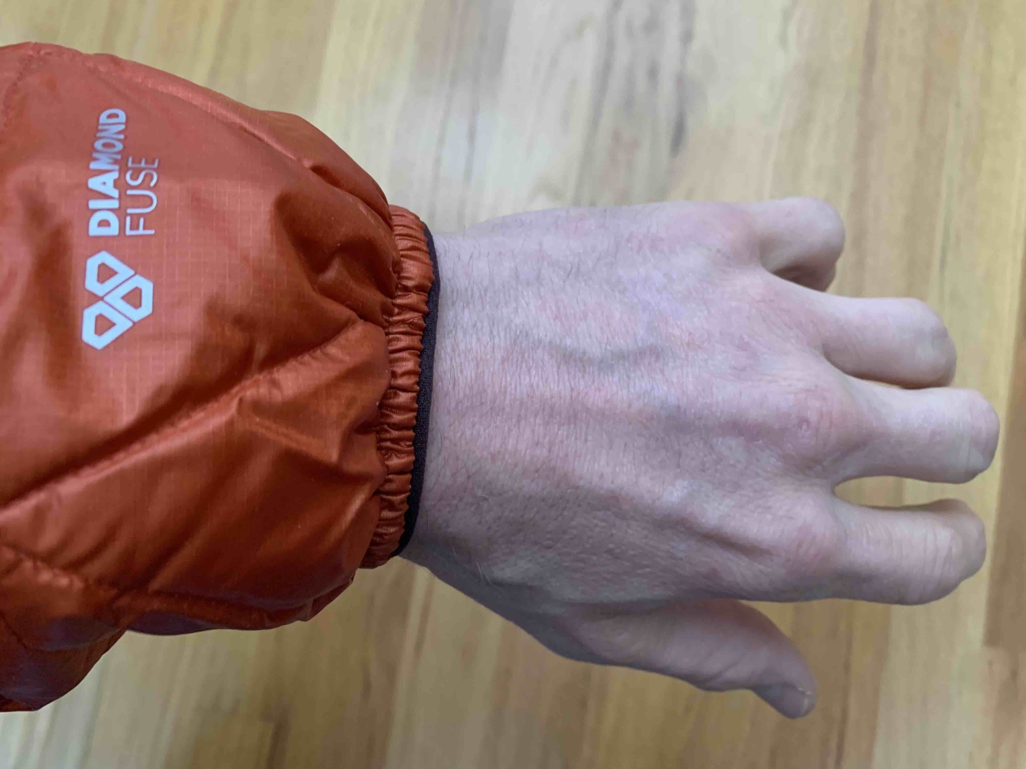 The elastic and fleece-lined wrist cuffs are comfortable on the skin and slide over gloves without issue. This jacket has very little stretch built into it but the cut of the shoulders gives you plenty of mobility for most activities. While it isn't our first choice for rock climbing, it's plenty comfortable for hiking, backpacking, skiing, and most outdoor activities.