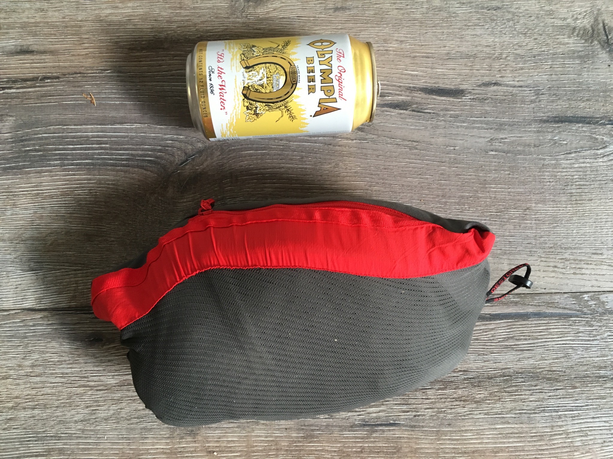 It took a lot of work to the get the Uberlayer into its pocket. It compresses small, but we'd prefer a larger stuff pocket so we could pack it away more quickly. Credit: Matt Bento