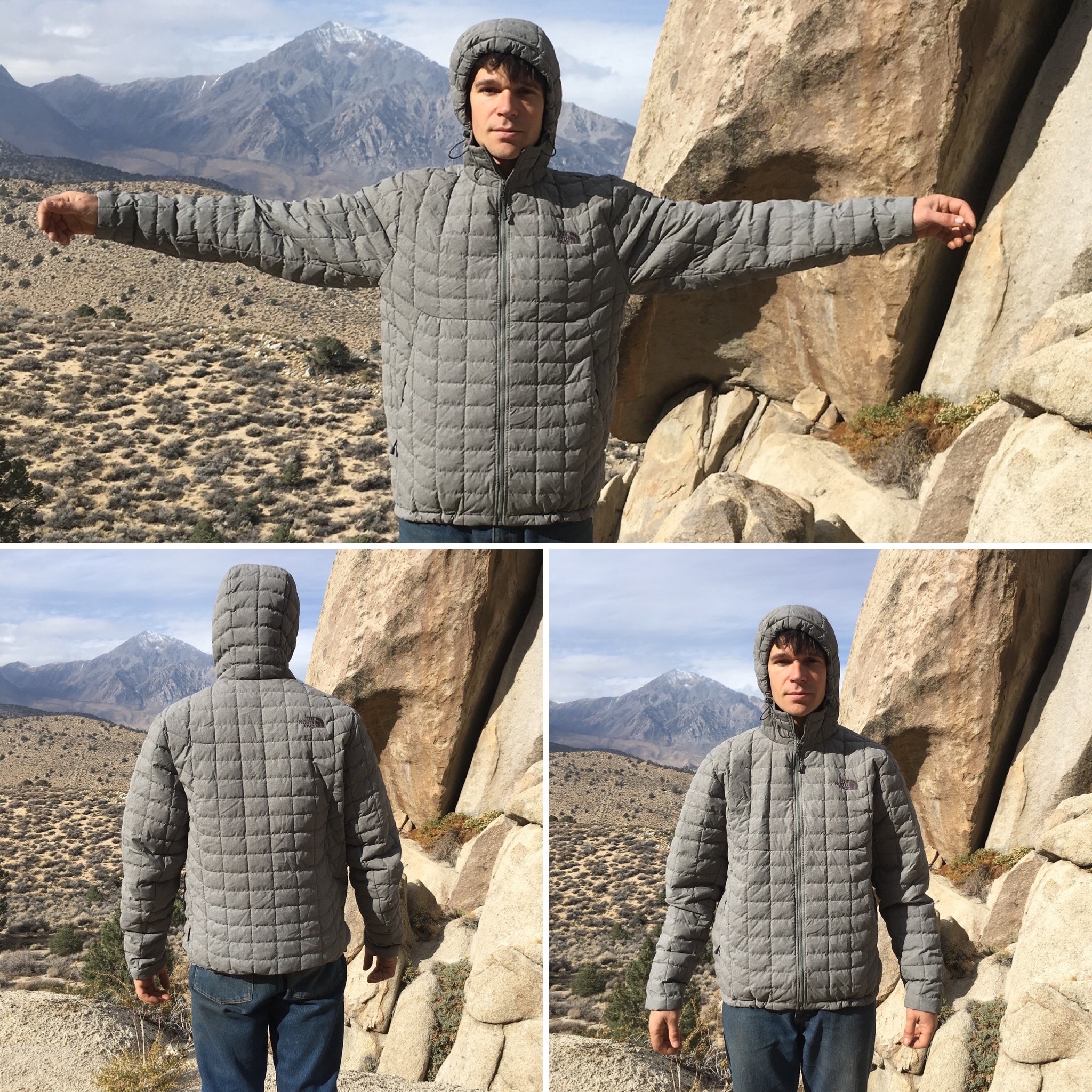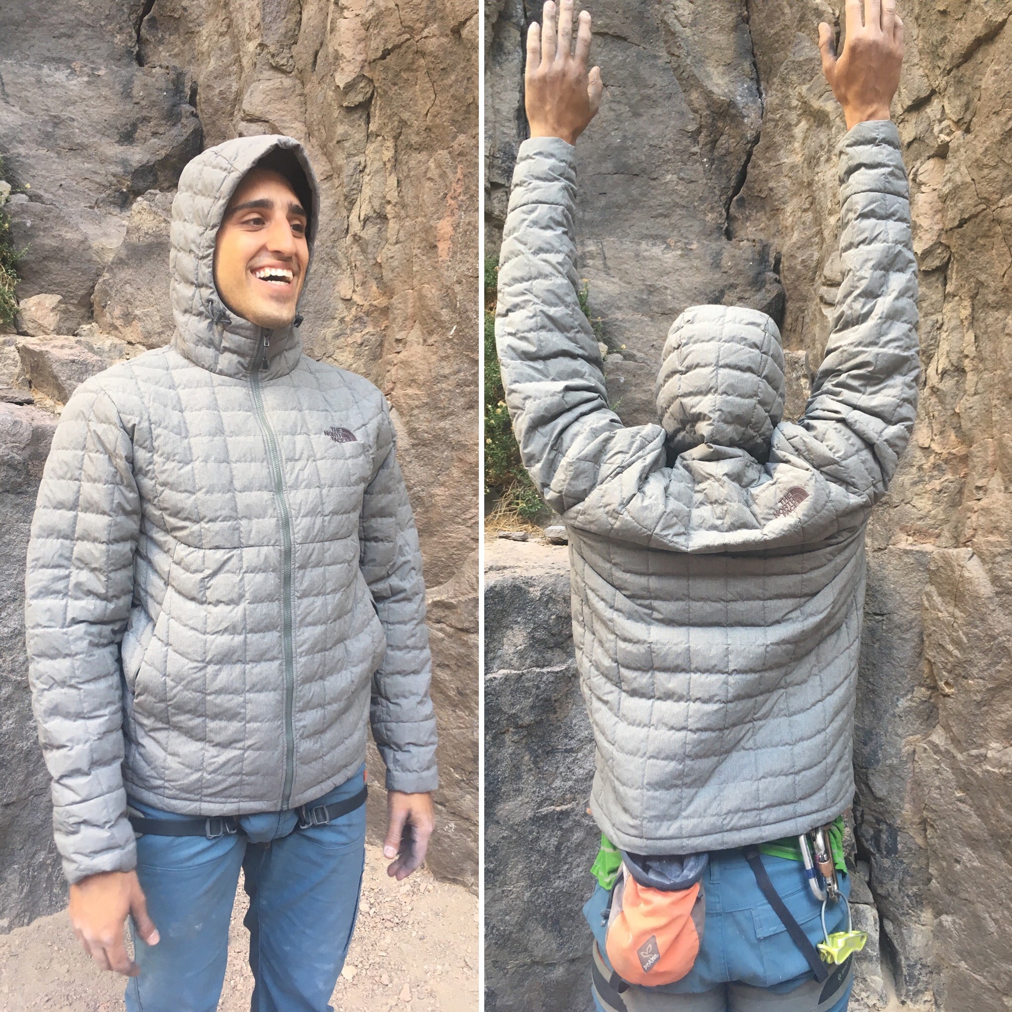 The ThermoBall is a lightly insulated jacket. We feel that it compares very closely with the Patagonia Nano Puff and may even be ever so slightly warmer. The ThermoBall felt warmer than the hybrid styled Outdoor Research Cathode Hooded Jacket, which employs stretchy side panels for breathability but at the cost of heat loss. With a fleece layer on underneath and the waist hem cinched down, the ThermoBall kept us toasty while belaying.