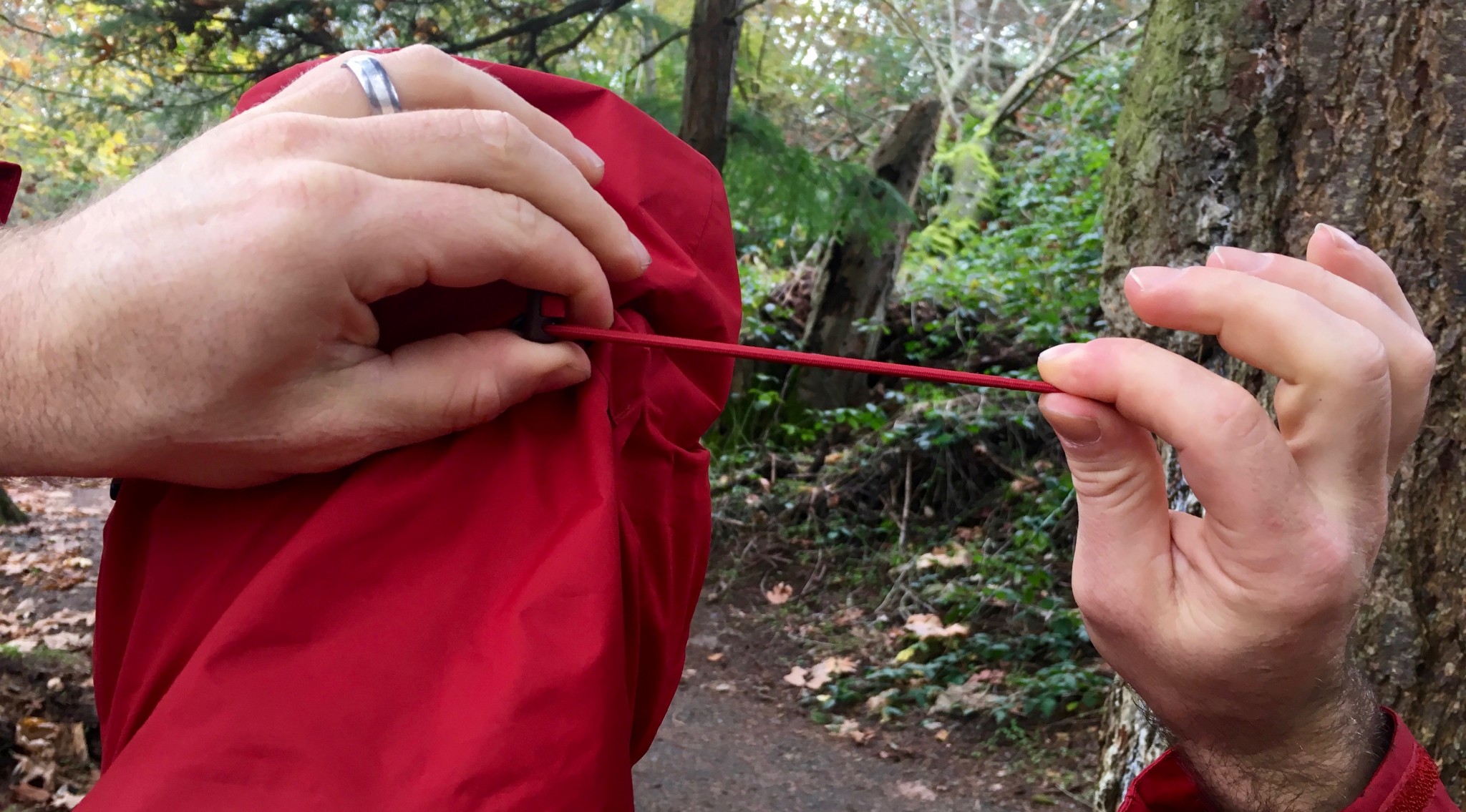 The Dryzzle's hood was fantastic with a baseball cap or a beanie, or only just your head. It provided the wearer above-average storm protection and kept our testers dry in both real-world uses and through an array of side-by-side comparisons. This contender offers excellent features that help keep it snug around the wearer's head without limiting any peripheral vision. The only downside? The Dryzzle's hood doesn't fit over a climbing or bike helmet very well; while it does technically fit, it's much tighter than the other models we tested, and it does affect the wearer's comfort and peripheral vision in these scenarios.