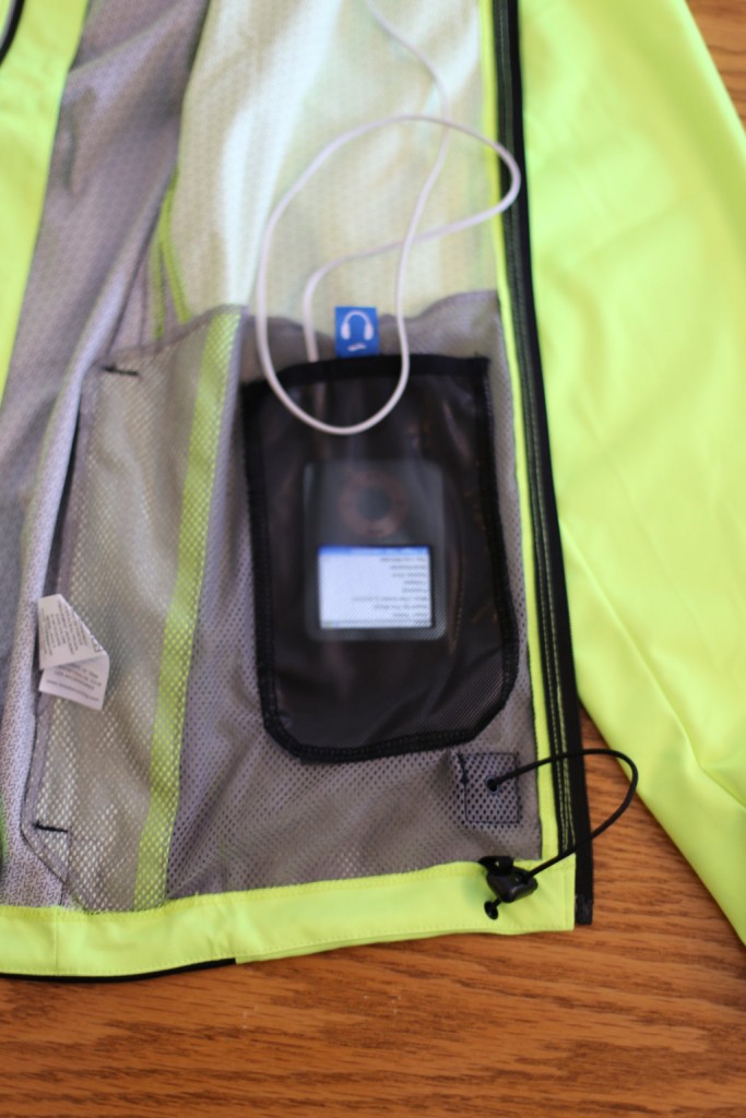 The Brooks Infiniti IV comes loaded with bells and whistles. The first thing that stood out to us was the ample storage space. There are two side pockets, as well as two open interior pockets (they don't zip closed and unfortunately aren't deep enough to keep items in place while running). There is also a nifty waterproof media pocket on the inside where your electronic device is sheltered from the elements and the unfortunate amount of condensation you may experience while wearing this piece. On the inside front of the Infiniti IV, at collar bone height there is an elastic loop for headphone cords to be threaded through. This feature stopped our headphones from tugging out of our ears as we ran — bonus! This piece also has reflective material lining the seams on the shoulder, which is a great safety feature. The only other jacket that compared in features to the Infiniti IV was our Best Buy Award winner, the Saucony Sonic.