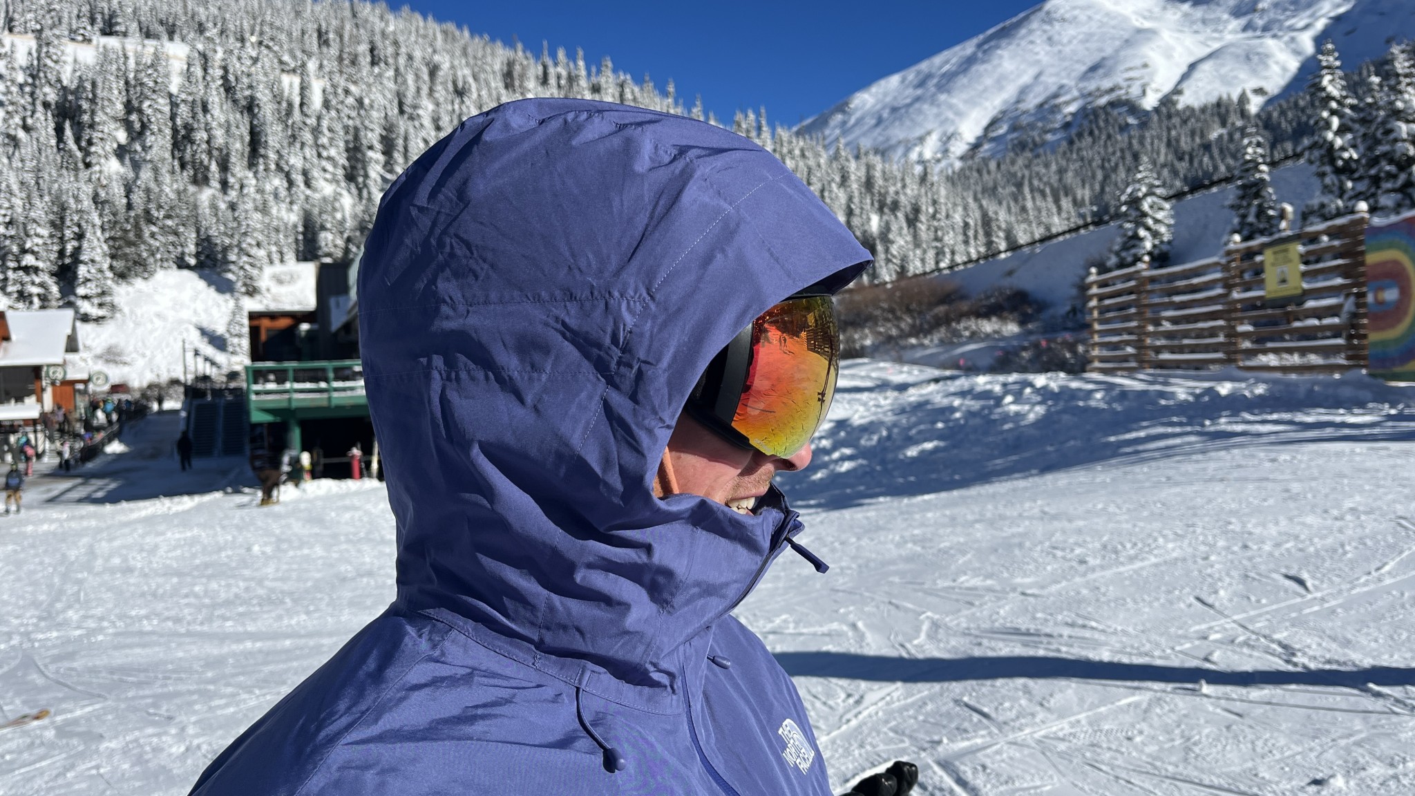 The Thermoball ECO Snow Triclimate proved to be a fairly weather-resistant jacket in our testing. The North Face's proprietary DryVent fabric is completely waterproof, and the seams are sealed. We also like the DWR used in this product. After an extended soaking in the shower, water still beaded up on the fabric. The attached hood is large and easily fits a helmet. The adjustment cords are easy to work with gloved hands. The sleeves and hem are long enough to keep all body parts covered. There is also an attached powder skirt, but you need to separate the shell from the liner before you can use it. Another bummer is that the pockets do not have waterproof zippers, allowing water to enter if worn on stormy days with temperatures above freezing.