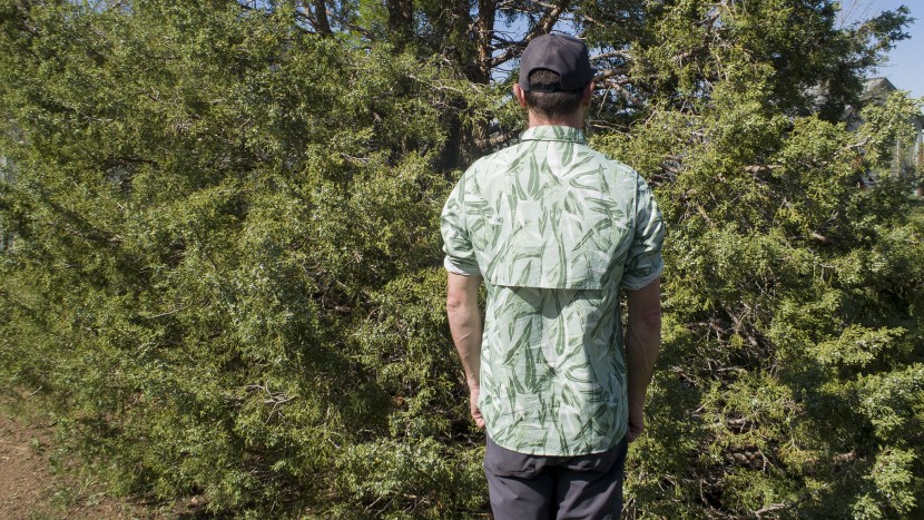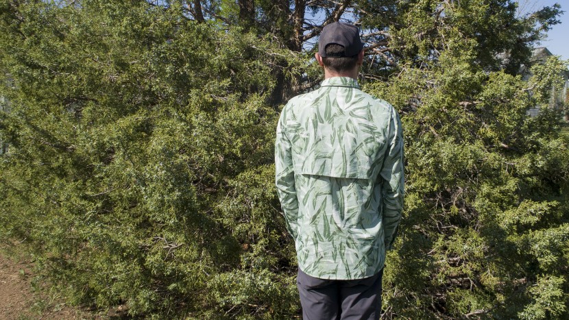 The Sol Patrol is one of the only shirts that we tested that has a sunglasses holder: a small loop of nylon webbing is stitched just right of the placket. It does its job admirably, even when active. Finally, rear vents, lined with mesh, help air move around the body but will suffer at times under a heavier pack.