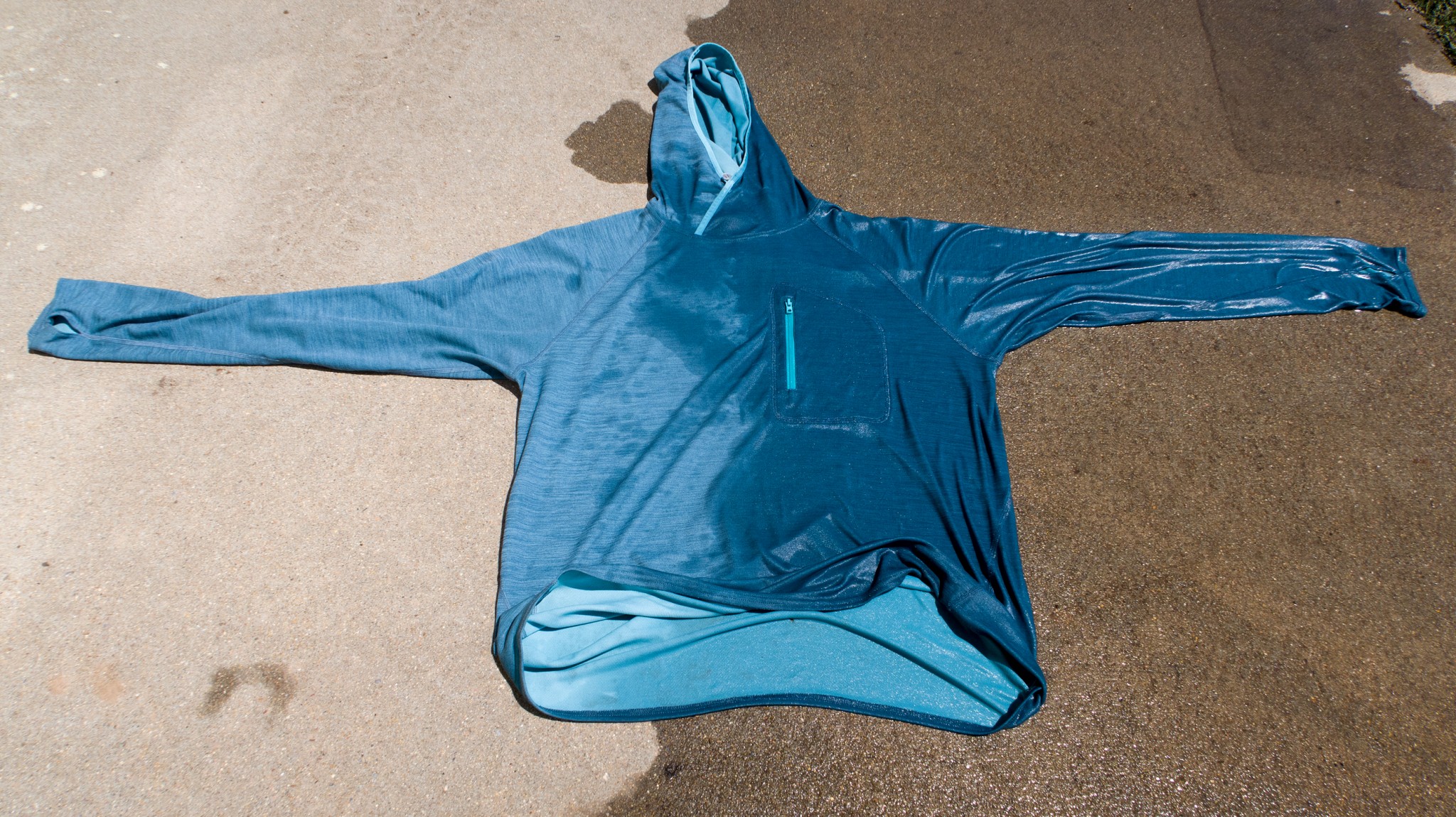 When compared to other hooded sun shirts we've tested, the Sunshade Technical has a looser fit than most, with generous length in the body, sleeves, and the size of the hood. If you're on the cusp of sizes, don't size up, or you'll be swimming in the shirt. The fabric itself likes to stretch, and that helps keep one comfortable when wearing it. You won't find any pinch points, nor will you find that the shirt is holding you back during strenuous activities like trail running or rock climbing.