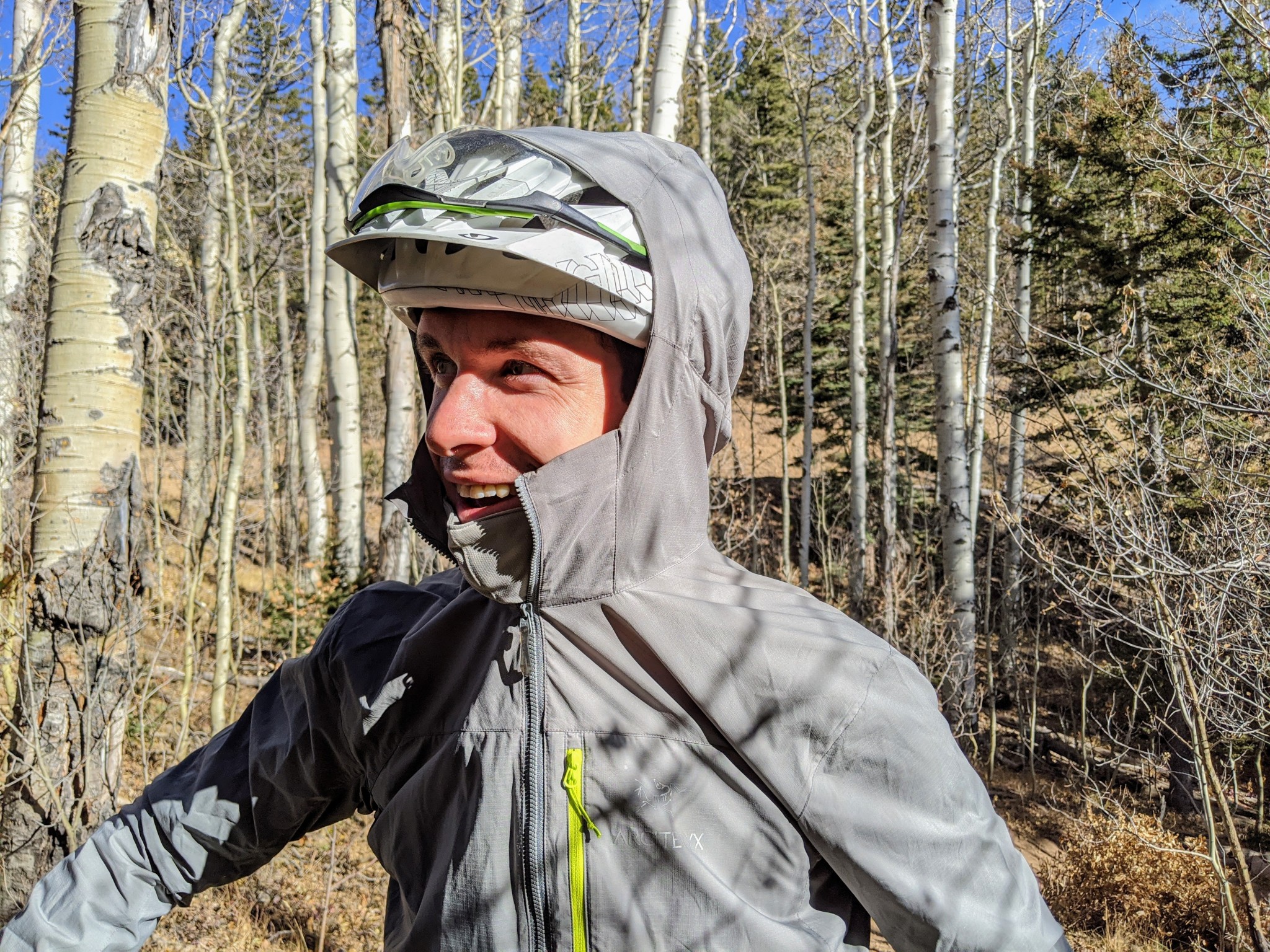 The Squamish is made of a very lightweight 30-denier, Tyono fabric that is both stretchy and breathable. While breathability and wind resistance are often mutually exclusive concepts, this jacket does a nice job of walking that fine line. On an unexpectedly windy day in the plains of northern Colorado — where wind gusts reached 60mph — we were comfortable enough to continue our hike, even though we were only wearing a t-shirt underneath this thin shell. Even without having to lock it down, the storm hood does a fantastic job staying in place over a hat, just with the jacket fully zipped up. Despite this performance, we still think it is best used in warmer weather situations, or for highly aerobic scenarios where breathability is valued over wind resistance — like skinning uphill.