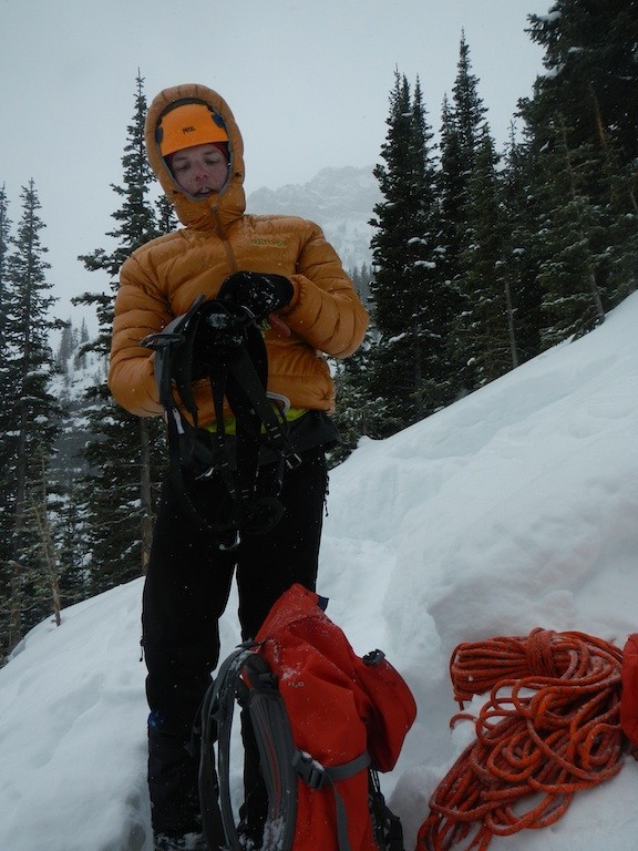 The weather resistance of the Brooks Range Mojave is almost identical to all the other light parkas in this review except for one significant aspect: hydrophobic down. The Mojave was much talked about in 2012 because of its implementation of DownTek, a hydrophobic coating on the down which increases its water repellency and allows it to dry faster if it does get wet. We performed a couple rudimentary tests comparing jackets with treated down and with regular down and found that the treated down clumped less and took slightly longer to lose its loft, but just barely. We don't think that this hydrophobic coating can replace a synthetic insulation layer in wet conditions, but it does allow the jacket to perform better under a wider range of conditions. In other words, the Mojave is perhaps better able to withstand light moisture and slightly wet conditions better than a similar product like the Rab Infinity, but its use of hydrophobic down does not make it preferable to a synthetic insulated parka if you're recreating in a wet climate. The most significant feature of your down parka concerning weather resistance will be the ability of the outer fabric to repel water in the first place. Like the other light parkas in our review that use a Pertex Quantum fabric, the Mojave does a fine job of repelling light precipitation. It may be that the primary advantage of hydrophobic down is its ability to better resist the moisture you create yourself as the wearer.